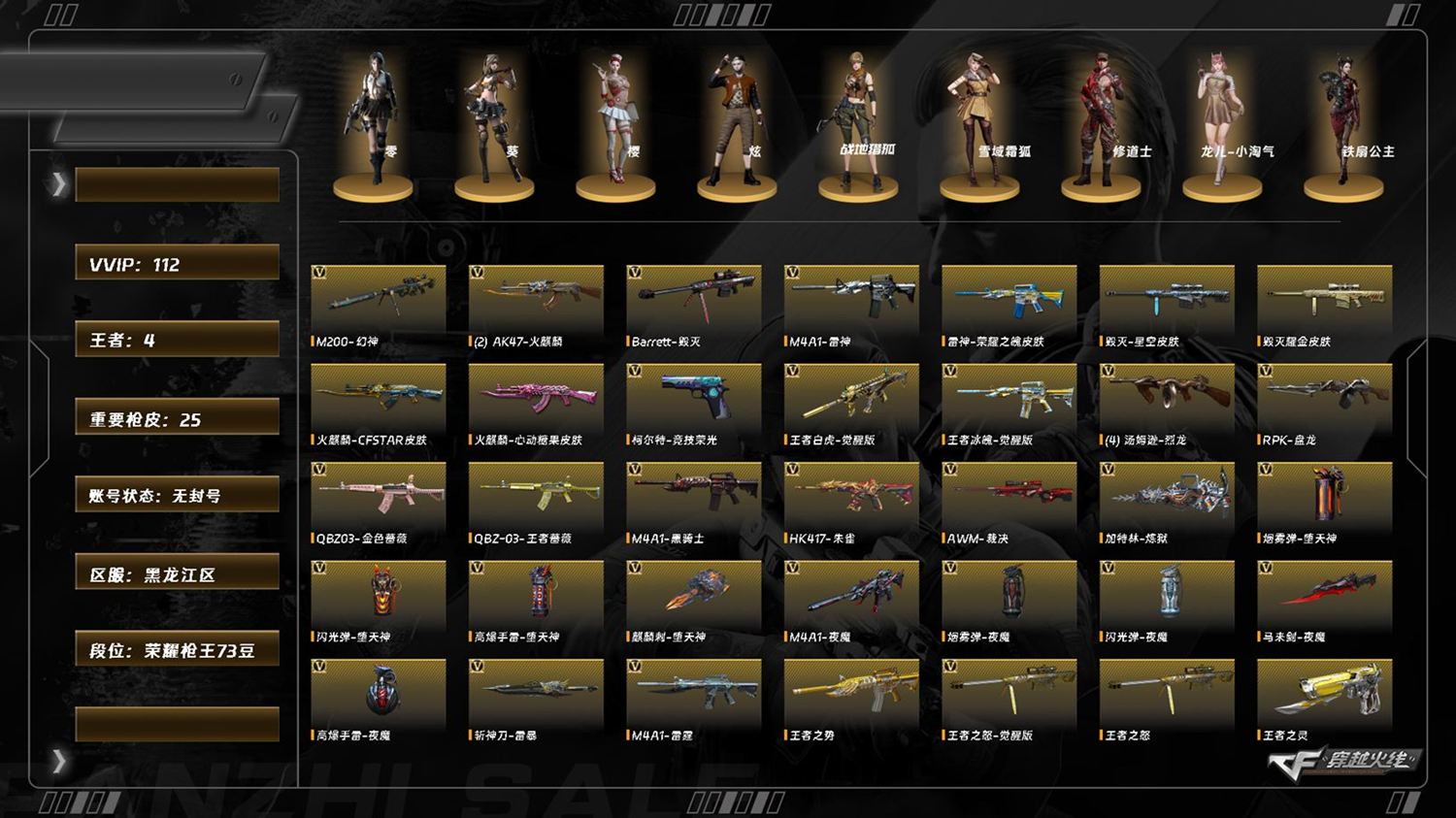 M8276/南部/湖南一区/可排位/149v/幻神12皮/双幻神/泡泡象/炼狱奇幻宇宙万象/5传说/【四防传说角色/传说女帝/神威莲华/】/传说辉光/神威天绫/传说灵眸/【幻神三件套/幻神*2/幻神荣耀世冠白鲨/幻神纸灯龙/幻神冠军之幻/幻神宠儿/幻神巅峰荣耀/幻神CFS2022/幻神曹操/幻神星火小队签名臻藏版/幻神Heartshot/幻神传奇欧欧/幻神电流骇客/幻神荣耀世冠白鲨2023/幻神音效卡/】/6盘龙/5烈龙/【星神三件套/星神/星神破竹/星神冠军之星/星神AGCFPLS21冠军/星神巅峰荣耀/星神音效卡/】/【竞技荣光套/M200竞技荣光/柯尔特竞技荣光/擎天竞技荣光/】/【白虎三件套/白虎/白虎虎啸/白虎冠军之虎/白虎霓虹机甲/白虎巅峰荣耀/白虎茸茸松狮/白虎音效卡/】/【金色蔷薇三件套/QBZ金色蔷薇/QBZ荣耀世冠白鲨/金色蔷薇纸灯龙/QBZ巅峰荣耀/QBZ虎鱼/QBZCFS2024/QBZ金色蔷薇斗鱼/金色蔷薇Heartshot/金色蔷薇破浪逐光/QBZ金色蔷薇音效卡/】/【裁决三件套/裁决/裁决异化之源/裁决百城联赛天津/裁决叶芒苍灵/裁决音效卡/】/王者星神/觉醒版/王者青龙/觉醒版/王者龙血/觉醒版/M14EBR玄武/青龙/G36C幻影/幻影缪斯音盒/幻影破浪逐光/FAMASG2天戎/加利尔ACE天袭/天罚斗烈龙驹/白虎电玩蓝兔/白虎之魄/荣耀世冠套装/荣耀世冠火麒麟/荣耀世冠雷神/荣耀世冠柯尔特/荣耀世冠龙啸/COP幻灵/USP神工天巧/柯尔特无冕之王/COP雷霆王者/柯尔特冠军之特/USP雷暴王者/*4/炽芒蝶刃*7/炽芒蝶刃破浪逐光/炽芒蝶刃宋雨琦/炽芒蝶刃荣耀世冠白鲨2023/冠军之刃/【四防角色/电竞教官云悠悠/毒蝰术士/兰巾帼英雄/隼/王者春/王者迷迭香/】/【角色】/关小羽/机械姬/鹰/零纪元/战地猎狐/斗烈龙骑/幻面灵狐/葵阿尔法武装/奇洋探员/乔伊教练/蛇隐宗/王者玲珑/雪域霜狐/云海玲珑/【音效卡/加特林炼狱音效卡/黑龙音效卡/天神动感闪耀音效卡/烈火动感闪耀音效卡/屠龙动感闪耀音效卡/毁灭音效卡/火麒麟音效卡/死神雪域霜狐怀旧音效卡/碧霄极光音效卡/雷神音效卡/炼狱百战金芒庆典舞曲音效卡/屠龙电竞之星竞星跃动音效卡/黑骑士音效卡/屠龙斗烈龙驹斗烈音效卡/天罚斗烈龙驹斗烈音效卡/】/【枪皮】/龙啸纸灯龙/火麒麟Heartshot/烈火动感闪耀/雷神宋雨琦/屠龙小叮当/龙啸蛇姬/雷神机甲刑天/擎天梧桐/雷神刘备/雷神巅峰荣耀/擎天冠军之击/屠龙破浪逐光/黑龙冠军之武/黑骑士CFS2021/雷神CFS十周年纪念版/黑骑士冠军之势/黑骑士电玩青兔/雷神宠儿/王者武器/王者冰魄/王者之圣/【小人枪/朱雀蛇隐宗/雷神精英刀锋/QBZ街机飒爽刀锋/水枪不败狙神/裁决雪莉杨/天龙曼陀罗/炼狱百战金芒/异变清道夫蛇影双骄/KAC锯式机枪黑桃战神/斯泰尔蝴蝶/USP铃狮送福/黄金猫猫手套白鲨/Cat刀锋/COP旗袍/】/永久AC/找回包赔