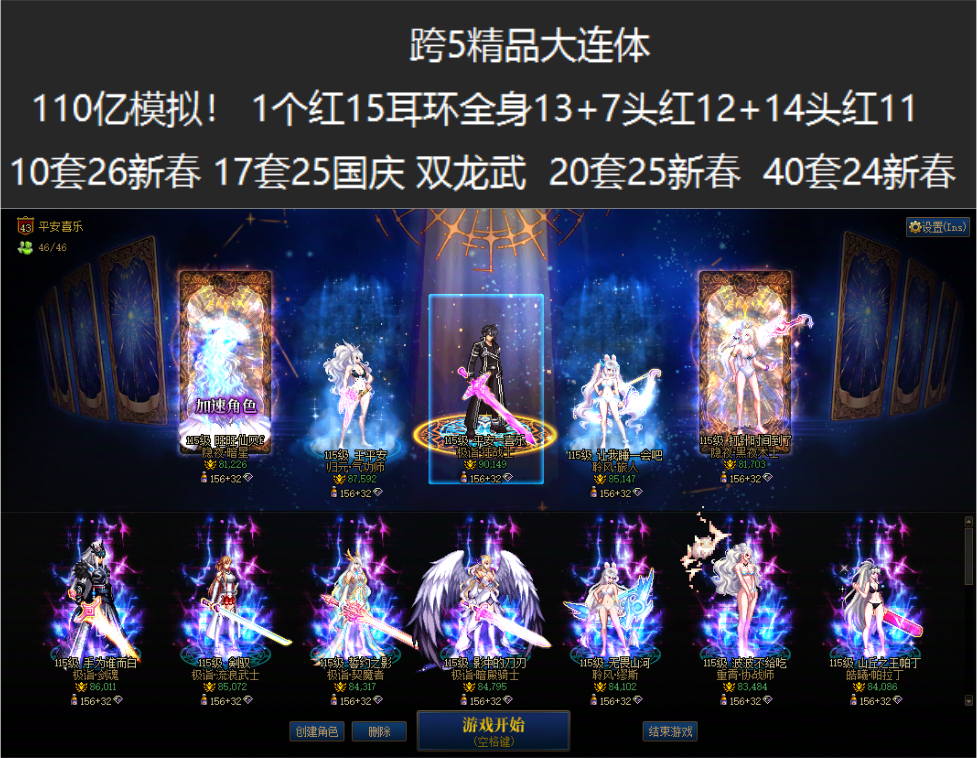 【XM】9475【精品账号】跨5【已买10套26新春礼包,17套25国庆礼包,20套25新春礼包,40套24新春礼包,2个龙武,5个25年奶尊】【3+2+5+9+0+4+2+2+0】【110亿模拟!1个耳环红15红13+7个红12+14个红11+1个红10】【收集箱已满】【9w狂战士带26年双至尊耳环红15全身红13,8.75w女气功带25年双至尊全身红12武器耳环红13,8.6w剑魂带25年双尊全身红12-11武器耳环13,8.5w旅人带24年双至尊全身红12武器13耳环红13,8.5w剑帝带24年双至尊全身红12武器13,8.5w暗帝全身红13-12武器红13,8.43w剑魔带23双尊全身红13-12武器耳环13,8.4w缪斯全身红13-12,8.34w协战师全身红12,8.4w帕拉丁带24双尊全身红12-11武器13,8.3w鬼泣全身红12-11武器13,8.2w妖护使全身红12-11武器13,8.18w阿修罗全身红11耳环红12,8.15w除恶者全身红12-11武器13,8.17w黑夜术士全身红12-11武器13,8.12w刺客全身红10武器13,8.1w战法全身红11武器13,8w小魔女全身红12-11,8w龙骑士全身红12-11,8w奶爸全身红12-11,8w奶爸全身红11,7.95w驱魔全身红11武器13,7.9w奶妈全身红11,连体多个满级搬砖角色】【共46个满级角色,未央可破凶17阶段,团本深渊首选】
