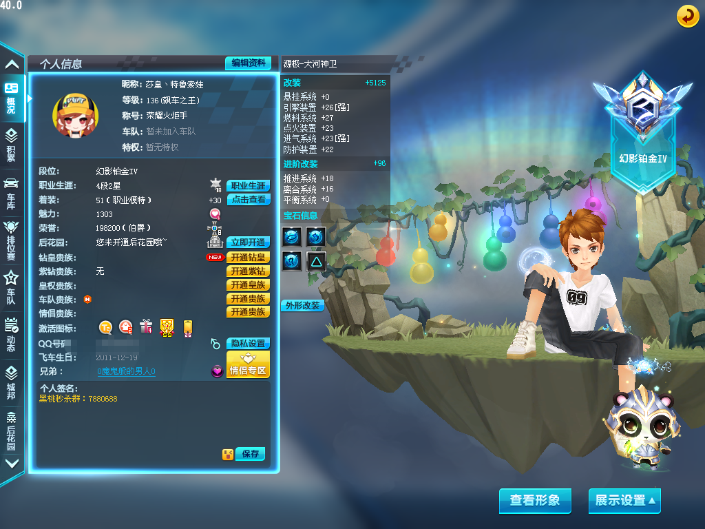 BZ642760 【单S-终极黑域电魔(终极黑域电魔-曹操 全29双4)/A级赛车-纪念版白银雷诺(准满改),极光律动(准满改)/宠物-绮梦精灵(+9),黄金神兽(+6),飞虎王(+5)/男装5页/女装13页】 【可二次实名】 S级赛车1 热门装备2 A级赛车1 S级赛车:终极黑域电魔; 热门装备:黄金神兽,飞虎王; A级赛车:纪念版白银雷诺;QQ飞车 - 电信一 -