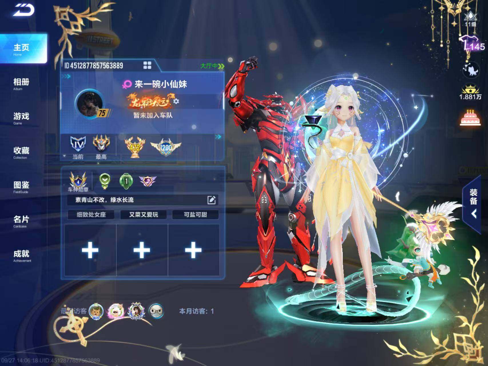 BZ641717 【V11/女图鉴1.2w/3T神威泰坦福睦舰长/源极鸭宝/5联赛幻星霆光弦音/7魔法】 A车数量102 游戏等级91 车皮肤数量40 T车数量3 【否】 【可二次实名】 【永久包赔】 【安卓QQ】 稀有车型1 稀有永久A车2 T车皮肤1 永久T车3 宠物6 稀有车型:双生战神; 稀有永久A车:海神,L-清; T车皮肤:神威泰坦福睦舰长; 永久T车:源极之星EXA,鸭宝超人,神威泰坦RE; 宠物:雪域狮王,蔷薇公主,机甲金刚,源梦之星,魔王天狮,铠甲战士;QQ飞车手游 - 安卓QQ -