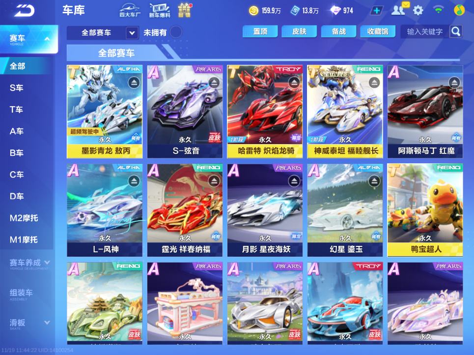 [13915618]【永久T车】:源极之星EXA,哈雷特【T车皮肤】:哈雷特 炽焰龙骑【A车皮肤】:粉喵雷诺 晶妍,夜宴 蔚明,紫焰铠甲 蓝火,玛莎拉蒂MC20 Cielo 无界,逐星者 踏浪【永久A车】:夜宴,玉落云烟,幽水之渊,狂野购物,舌尖新疆,阿斯顿马丁Valkyrie,龙珏雷诺,北极萌主,墨染青花,玛莎拉蒂MC20 Cielo,大福芦,闪耀之星,幻夜霓虹,赤焰天启,紫焰铠甲,凌天,侠影传说,柯星出击,极音战歌,璀璨之星【宠物】:铠甲战士,月下玫瑰,小悟空,申公豹,句芒,机甲金刚,瑞年雪兔,雪绒贵宾,小浣熊,考拉,福鼠飞飞,飞虎王,迪迦奥特曼