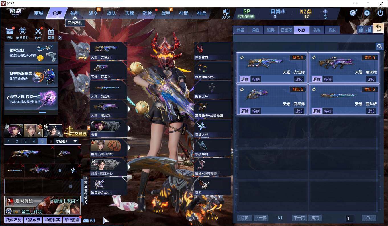 [14195290]E4131/可二次/电信【天耀套】/哮天犬主武/甜心萌兔两件/极夜双星/幽冥毒皇/烈焰战神/火神暴君/飓风之龙/星尘/狼王副武器/马来剑-寻龙/尼泊尔-的卢/间谍人偶左尔格/黑岩手炮/萌萌虎-筱筱/金战云/灵踪-苍松斗笠/灵踪-神水宝闸/熊猫背包/蚀刻之环/化金戒指-金蛇献瑞/暗夜翼龙-游园絮语/灵踪-五灵幻兽/至宝圣鲲/星海使者-希亚/广寒玉兔/编号m233/绯羽/灵踪-鸣咤炎神/海拉-新纪元/赤炎钢虎-斩影/黎明之翼小飞机一玩具毁灭者/金乌-1543/英雄影戍/1史诗碎片/2稀释精华/可排位/详细看图,天曜套逆战 - 电信 -