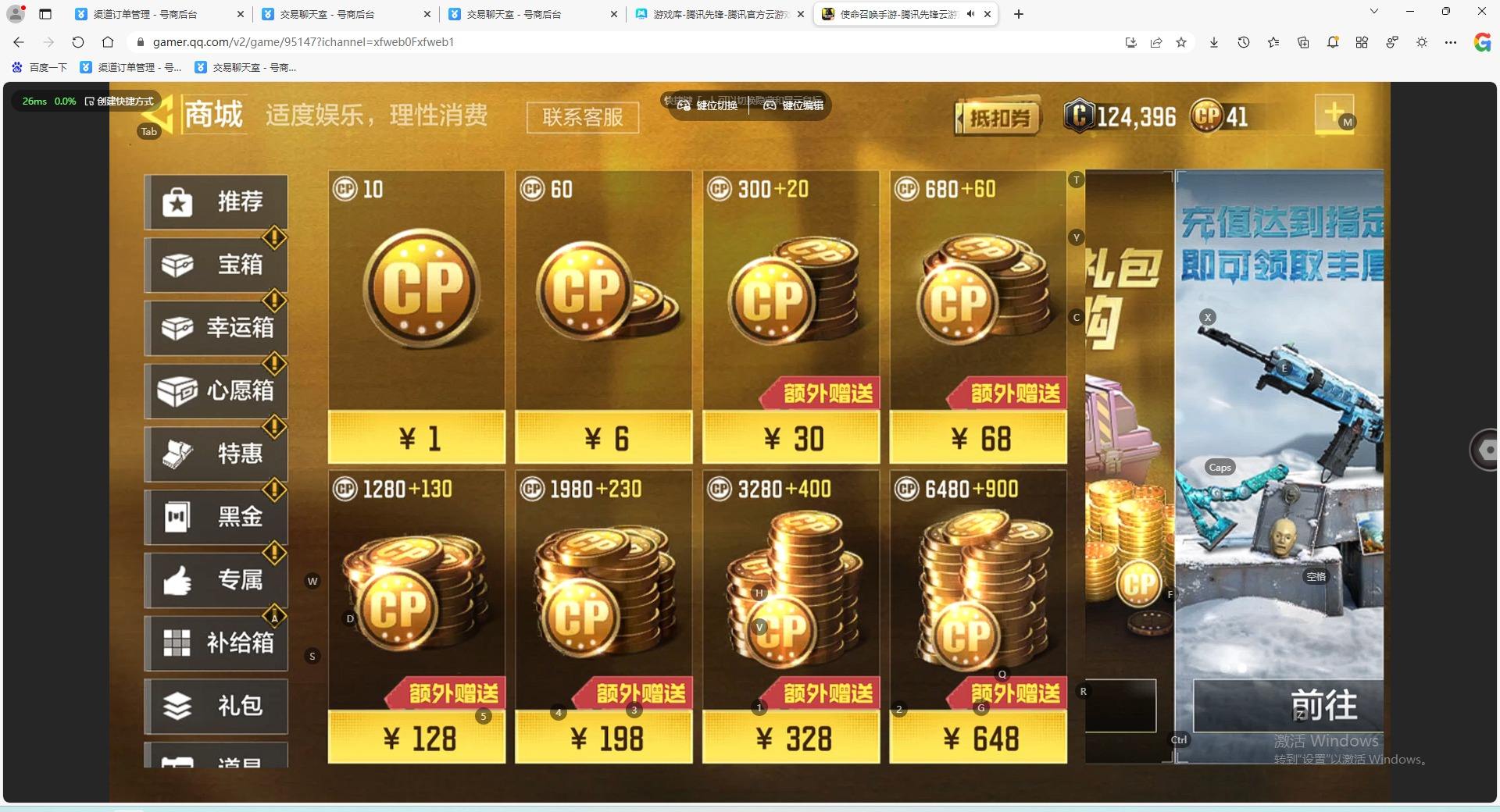 [17512654]FC-2H6XRX苹果QQ,实名状态:可改实名,段位:铂金,神话武器数量:6,传说武器数量:10,【神话武器】SMG5-潮海汐月,DLQ33-红莲天诛,AK47-三重幻境,Krig 6-冰霜巨龙,AK117-终墟,CX-9-希尔芙的庇佑,【传说武器】RPD-一路悠扬,Locus-动能无限,Type25-赤焰复仇,Man O War-梦幻水晶,唐刀-白月魁,AK117-白月魁,M4-皇家黑魂,Striker-源代码,DLQ33-狂热祈愿,