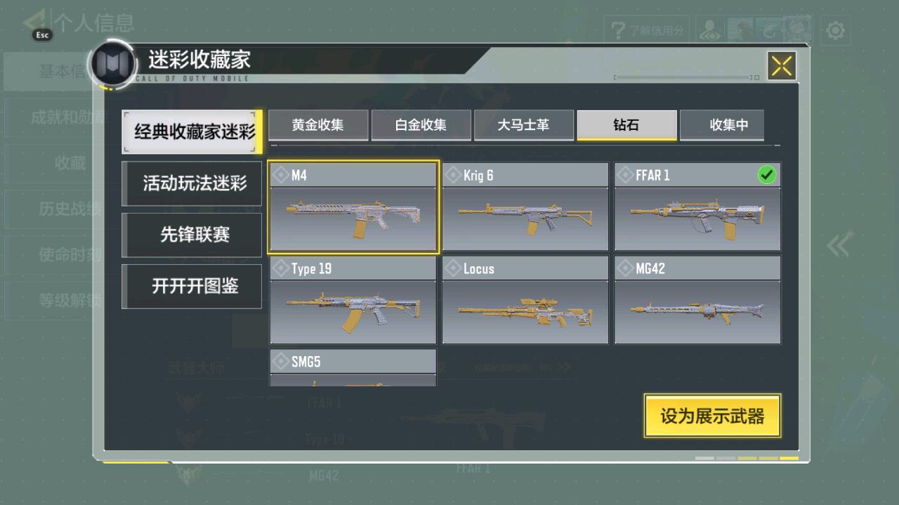 [14682191]367级 1神话 1典藏 11传说 317史诗 段位钻石 可修改 【典藏枪械】:HG40-灵魂羁绊·典藏【神话枪械】:Krig 6-冰霜巨龙【传说枪械】:M4-皇家黑魂,Type25-赤焰复仇,SA80-狂暴冲锋,DLQ33-狂热祈愿,DRH-蝮蛇潜渊,Holger26-冥界提灯,DLQ33-炫彩冬日,QXR-冰雪奇迹,AK117-炫彩冬日