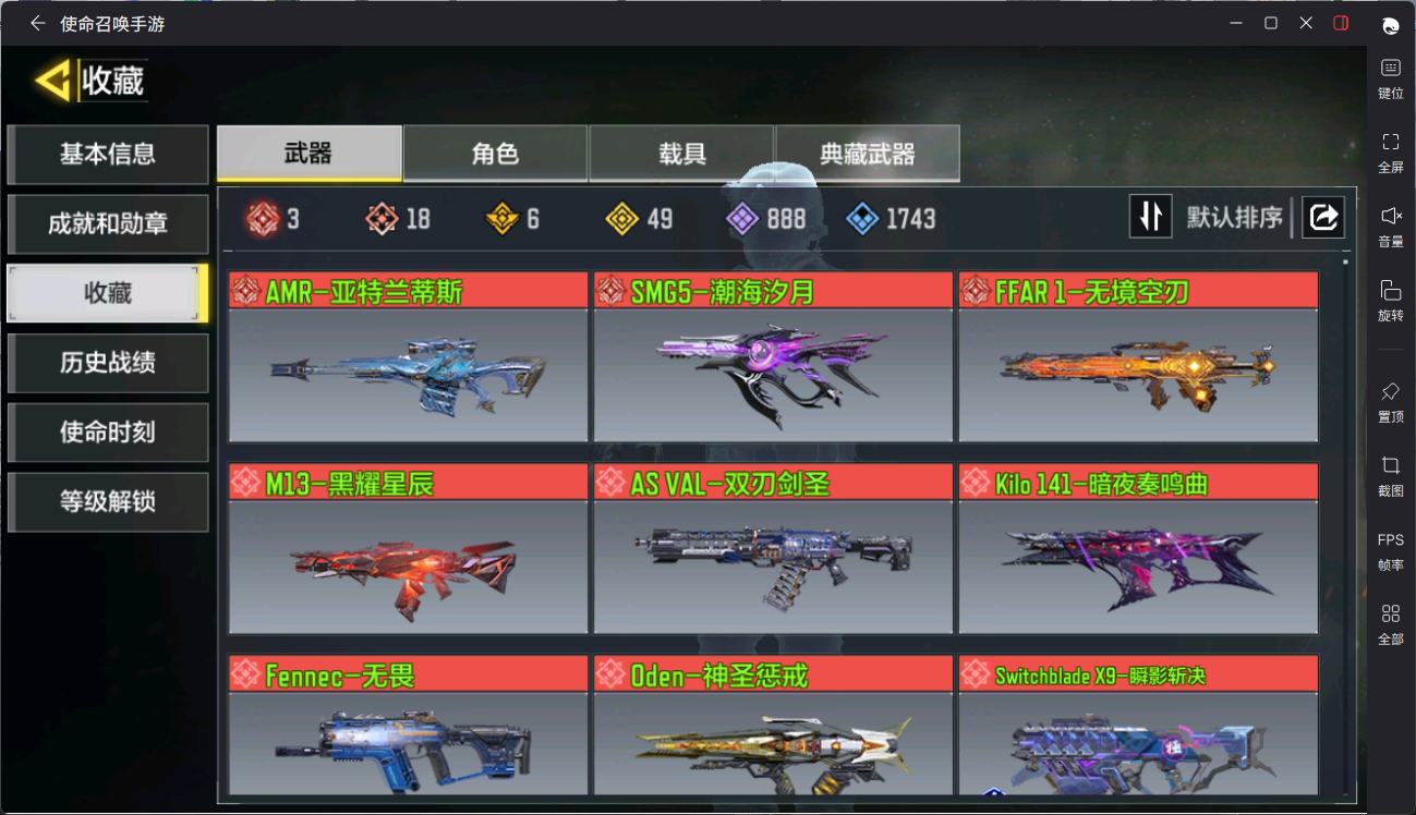 [15585220]350级 10神话 4典藏 25传说 415史诗 段位铂金 可二次 可修改实名 【典藏枪械】Swordfish-糖化魔猫·典藏,AGR-圣骑之刃·典藏,MX9-无心一击·典藏【神话枪械】SMG5-潮海汐月,AK117-终墟,Krig 6-冰霜巨龙,DLQ33-红莲天诛,FFAR 1-无境空刃,AS VAL-双刃剑圣,Holger26-黑暗曙光,AMR-亚特兰蒂斯,Kilo141-暗夜奏鸣曲,EM2-苍穹【传说枪械】SA80-电光骇客,M4-皇家黑魂,Pharo-梦幻水晶,Dobvra-渊影浮光,Type25-赤焰复仇,SA80-狂暴冲锋,CR56-梦呓渡鸦,Kar98k-雷鸣光束,M13-花晨月夕,M1887-闪耀明星,Fennec-终焉之光,DR MK2-华丽独奏,唐刀-白月魁,Swordfish-海神之戟,DRH-蝮蛇潜渊,PP19-蔑誓者,DRH-硬核玩家,G37-次元律动使命召唤手游 - 安卓微信 -