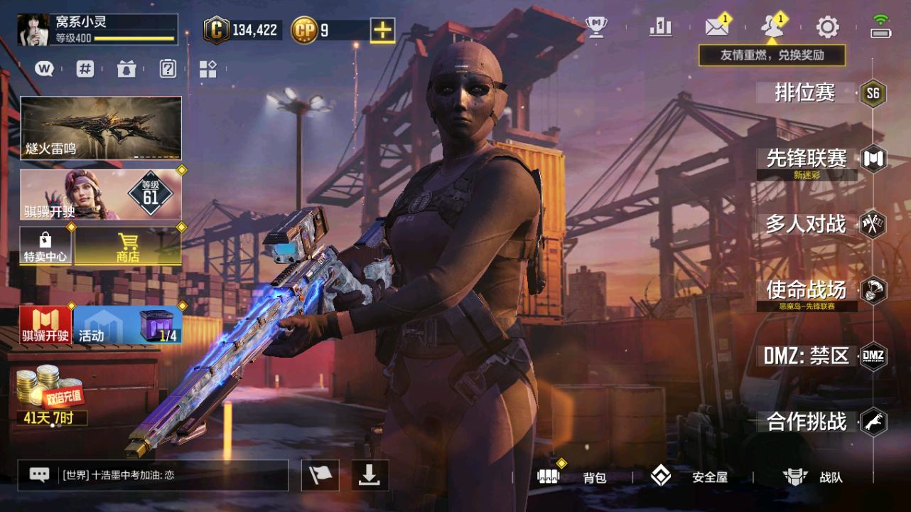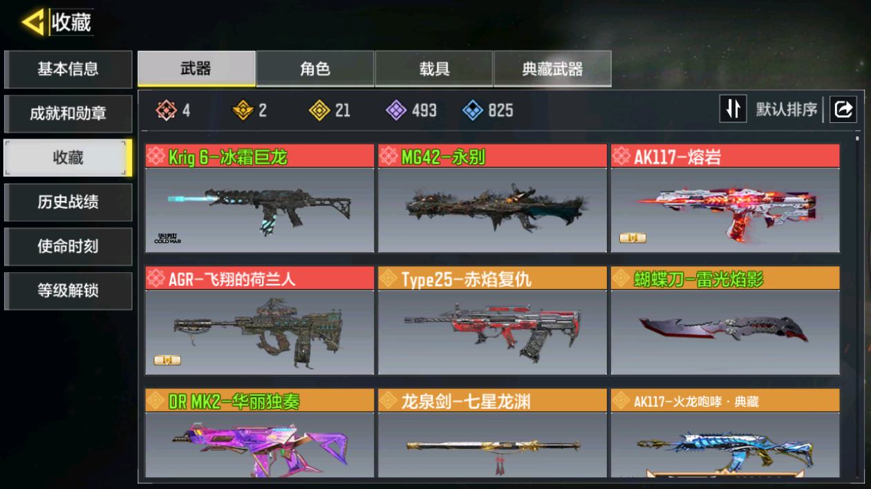 MHZ2645有二次【3红1满13金 圣诞狙】 苹果Q-等级400-史诗枪械321 【3神话1满级】 Krig 6-冰霜巨龙 (满级) Grau5.56-源核天灾 0den-神圣惩戒 【13传说】 Type25-赤焰复仇 SA80-狂暴冲锋 藤棍-沙海蛇影 G37-银河星舰 DLQ33-炫彩冬日 G37-群山灿阳 电棍-永恒炽热 CR56-回音律动 AK47-火箭炮 飞翼浮游炮-v高达 Krig6-苍天之剑 M4-皇家黑魂 FFAR1-星彩乐手 Krig6-冰霜巨龙 Grau 5.56-源核天灾 Oden-神圣惩戒 Krig 6-苍天之剑