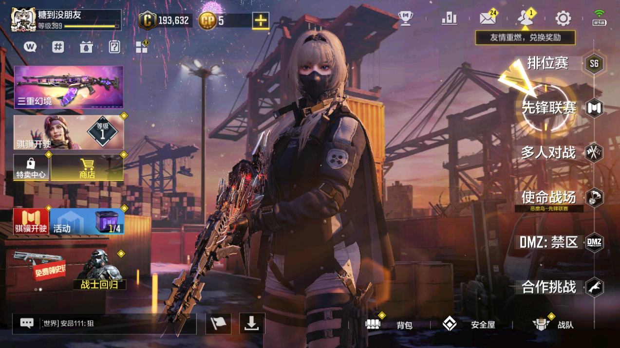[16264106]400级 6神话 1典藏 23传说 600史诗 段位黄金 可二次 可修改实名 【典藏枪械】SKS-粒子震击·典藏【神话枪械】SMG5-潮海汐月,AK117-熔岩,USS9-焕光跃迁,MG42-永别,CX-9-希尔芙的庇佑,FFAR 1-无境空刃【传说枪械】M13-紫炎舞,HDR-狂笑终章,AKBP-塞壬律曲,M4-皇家黑魂,KN44-寒鸦,Type25-赤焰复仇,SA80-狂暴冲锋,Striker-源代码,RPD-一路悠扬,AK47-火箭炮,电棍-永恒炽热,CR56-回音律动,G37-群山灿阳,PP19-星乐章,DLQ33-先进火力,Kar98k-雷鸣光束,M13-花晨月夕,M1887-闪耀明星,DRH-蝮蛇潜渊,Locus-动能无限,Locus-海神之戟