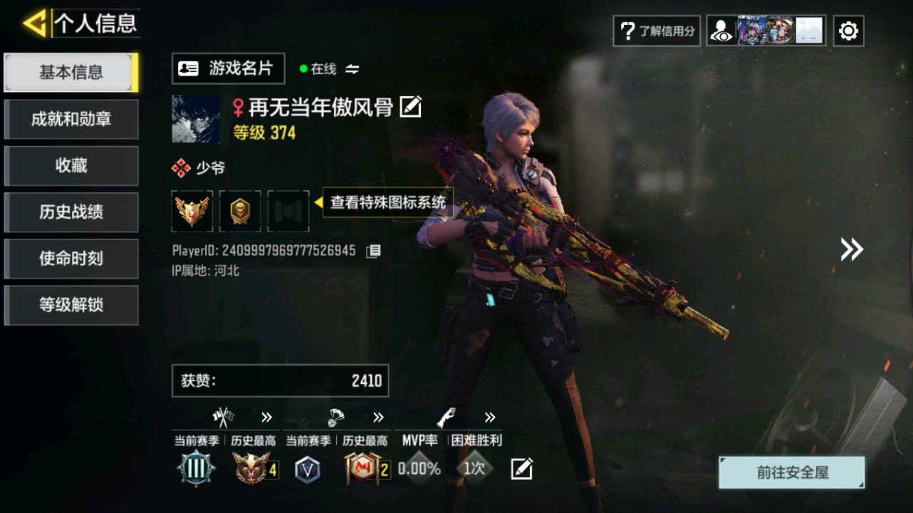 [17107277]136级 2神话 4传说 37史诗 段位黄金 可二次 可修改实名 【神话枪械】VMP-幽冥花海,Type19-丹青万壑【传说枪械】AK47-火箭炮,Locus-红色彗星,Chopper-地狱猎犬
