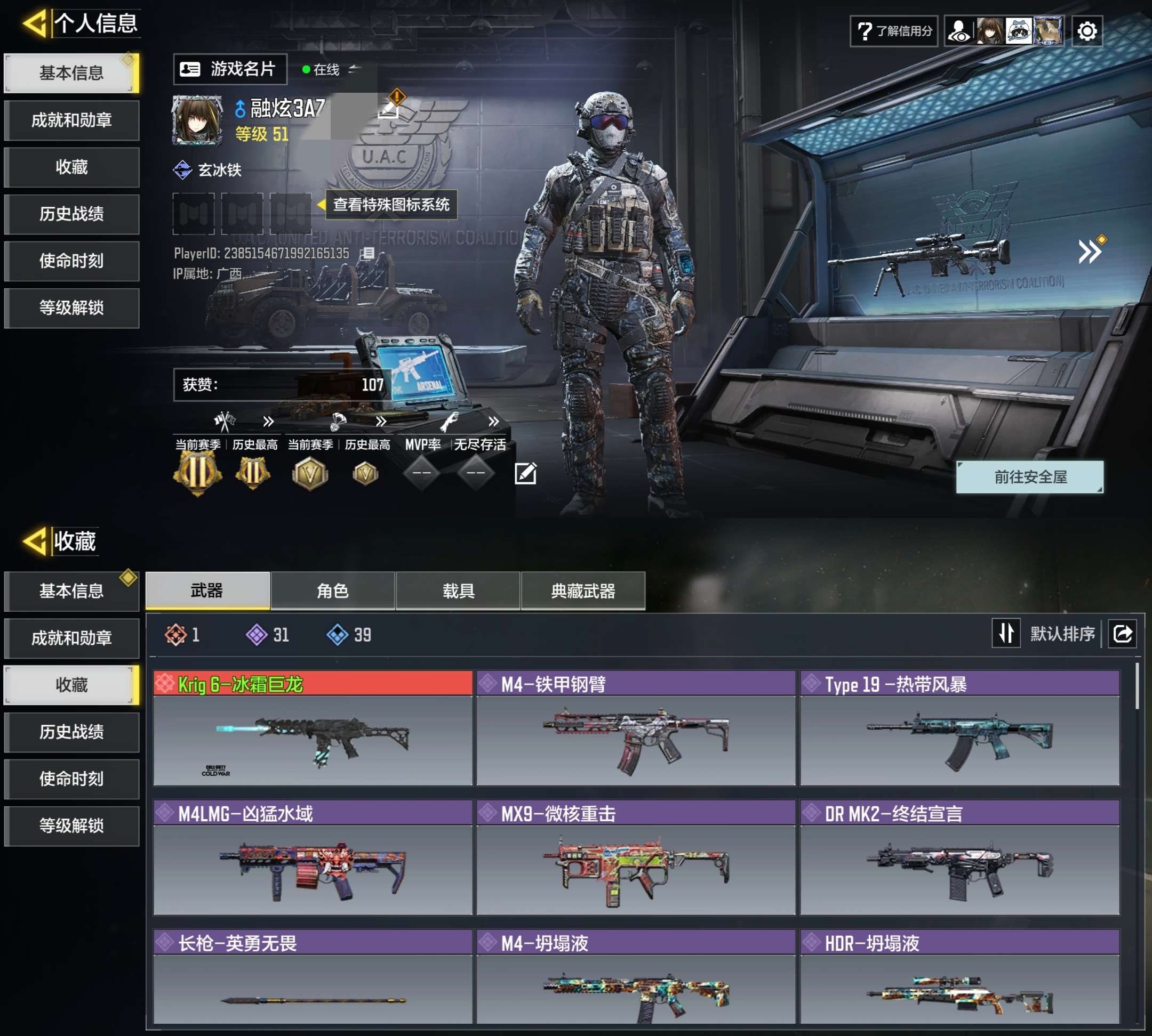H6491有二次 安卓Q-段位大师 51级 【1神话】 Krig 6-冰霜巨龙 【31史诗39普通武器13角色3载具】使命召唤手游 - 安卓qq -