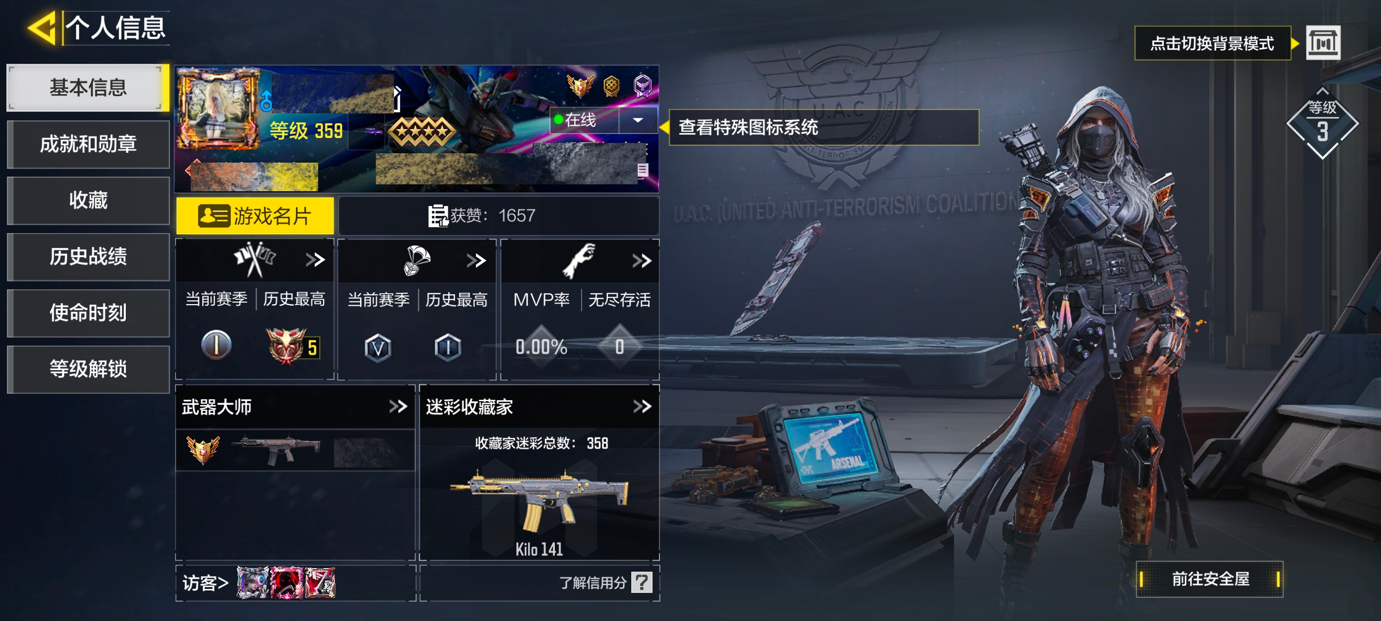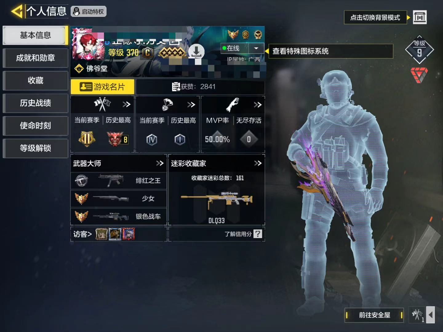 400级 7神话 1典藏 14传说 482史诗 段位钻石 可修改 【典藏枪械】:Arctic50-魅惑灵狐·典藏【神话枪械】:AK117-熔岩,MG42-永别,Krig 6-冰霜巨龙,DLQ33-红莲天诛,FFAR 1-无境空刃,Kilo141-暗夜奏鸣曲,Switchblade X9-瞬影斩决【传说枪械】:M4-皇家黑魂,Type25-赤焰复仇,SA80-狂暴冲锋,AK47-火箭炮,电棍-永恒炽热,CR56-回音律动,CBR4-凡此过往,SPR208-斗转星移,唐刀-白月魁,50GS-路阻且长,DLQ33-炫彩冬日,飞翼浮游炮-v高达,AKS 74U-神灯灵愿