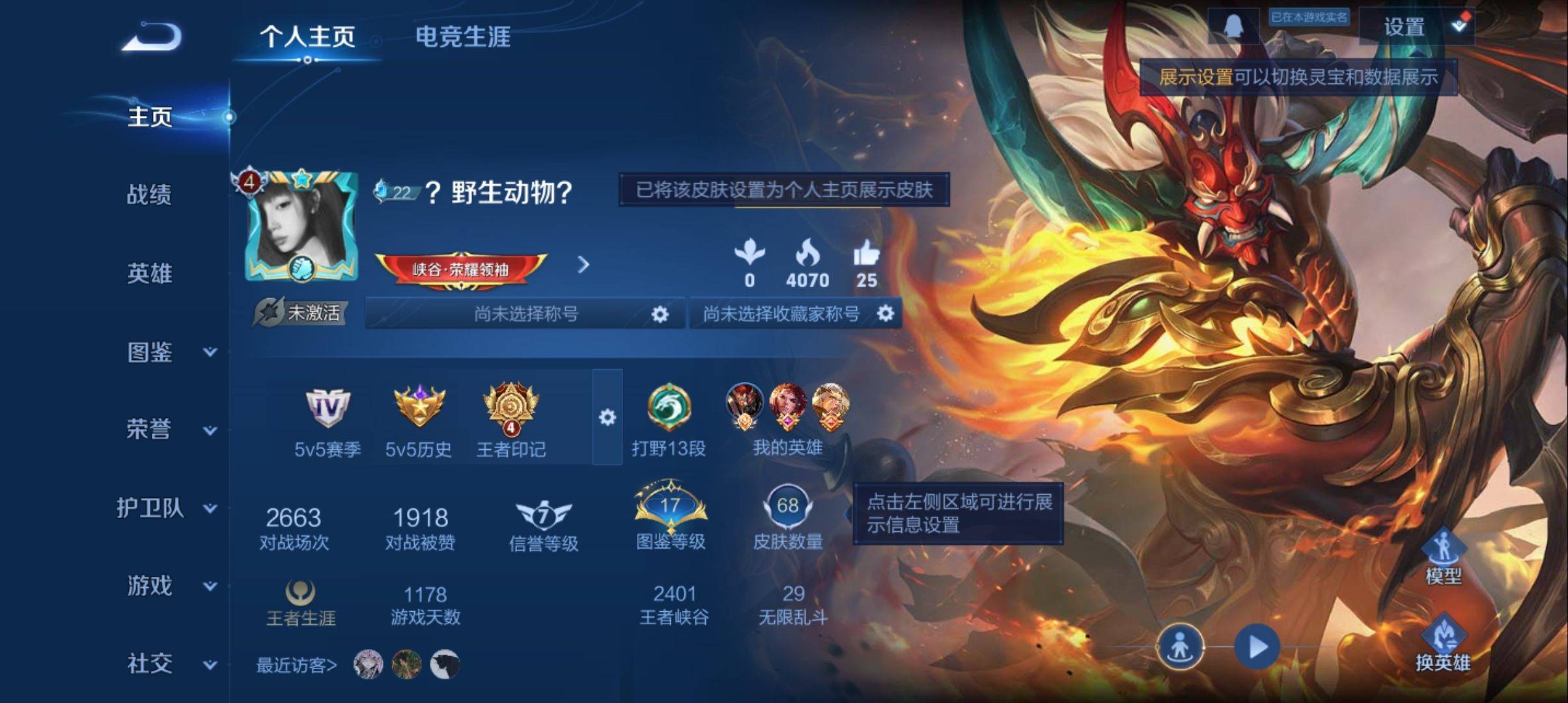 由于赛季更新段位以上号为准安卓Q【】英雄数量:120皮肤数量:110贵族等级:贵族V2传说品质3史诗品质24神树通天地狱之眼鸣野蒿天才门将鬼剑武藏魅力维加斯暗隐猎兽者乘风破浪未来纪元赵云金属风暴江河有灵修罗舞动绿茵电玩小子千年之狐摇滚巨星无心五谷丰年拒霜思高山流水纤云弄巧李小龙冰冠公主冰雪圆舞曲鹰眼护卫水果甜心节奏热浪妄想食味太极少年程咬金群星魔术团救世之瞳白执事乓乓大师乐园追猎者潮玩探月行海盐诗旅潮玩造梦师云中旅人蔚蓝守将大漠名商西部游侠无双福将古海寻踪缤纷绘卷探海日志瓷语鉴心秘密基地东方不败聚星闪耀劲辣红锅兔女郎特工战影大发明家黄金武士妄想特派天使之翼擒涛扼浪白色死神纽约教父死亡营地号:1718315221