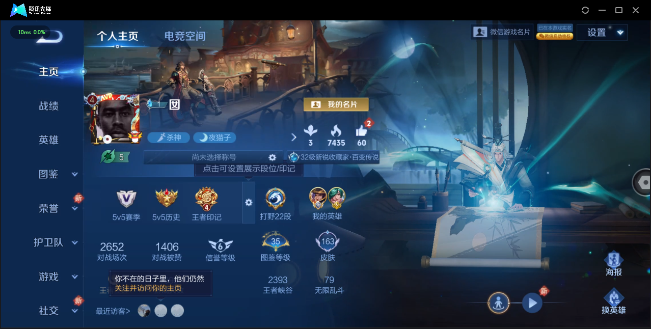 由于赛季更新段位以上号为准苹果Q【包人脸】英雄数量:125皮肤数量:203贵族等级:贵族V0苹果qV203皮肤1典藏13传说 【典藏】 九霄神辉 【传说】 马超琥珀纪元 祥瑞亨通 愿照九州拓 鸣野蒿 齐天大圣 无双飞将 诗剑行 炽阳神光 云鹰飞将 黄金狮子座 黄金白羊座 胖达荣荣 地狱之眼 【热门】万灵启世 涂山容容 至尊宝 岱宗 拒霜思 神迹守卫钟馗 原初追逐者 美猴王 暗夜猫娘 器灵浮梦炉 东方月初 燃音魔法 百解令 无限星赏官 李小龙 水晶猎龙者 暗隐猎兽者 猫狗日记男 猫狗日记女 金属风暴 地狱岩魂 特工魅影 曙光守护者 特工战影 青蛇 妄想食味 逐浪之夏 心灵战警 晚萤 魅语 千年之狐 紫霞仙子 功夫厨神 心灵骇客 圣诞恋歌 幽灵船长 乘风破浪 圣诞狂欢 末日机甲男 星夜王子 永昼 天才门将 偶像歌手 街头霸王 摇滚巨星 缤纷独角兽 鬼剑武藏 德古拉伯爵 冰雪圆舞曲 青焰无极 花好人间 苍威无极 东方不败 未来纪元赵云 拳王 女仆咖啡 海盐诗旅 皇家上将 擒涛扼浪 魅力维加斯 探海日志 水果甜心 古海寻踪 蔬乡物语鲁班 天穹祈灯 驭风魔法 星界游侠 地狱燃心 江河有灵 荣光圣徽 顽岩魄 纤云弄巧 夏日便利店蔡文姬 乱世虎臣 魔术师 顽趣梦奇 125英雄营地ID:1709575476 营地号:1709575476王者荣耀 - QQ(苹果) -