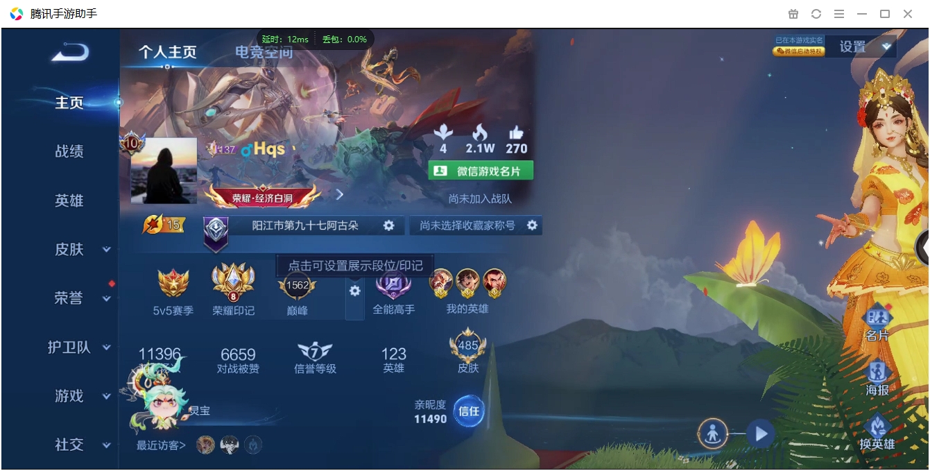 营地号363133802-【QQ(安卓)】贵族6-贵族积分1万-123英雄-146皮肤-160铭文