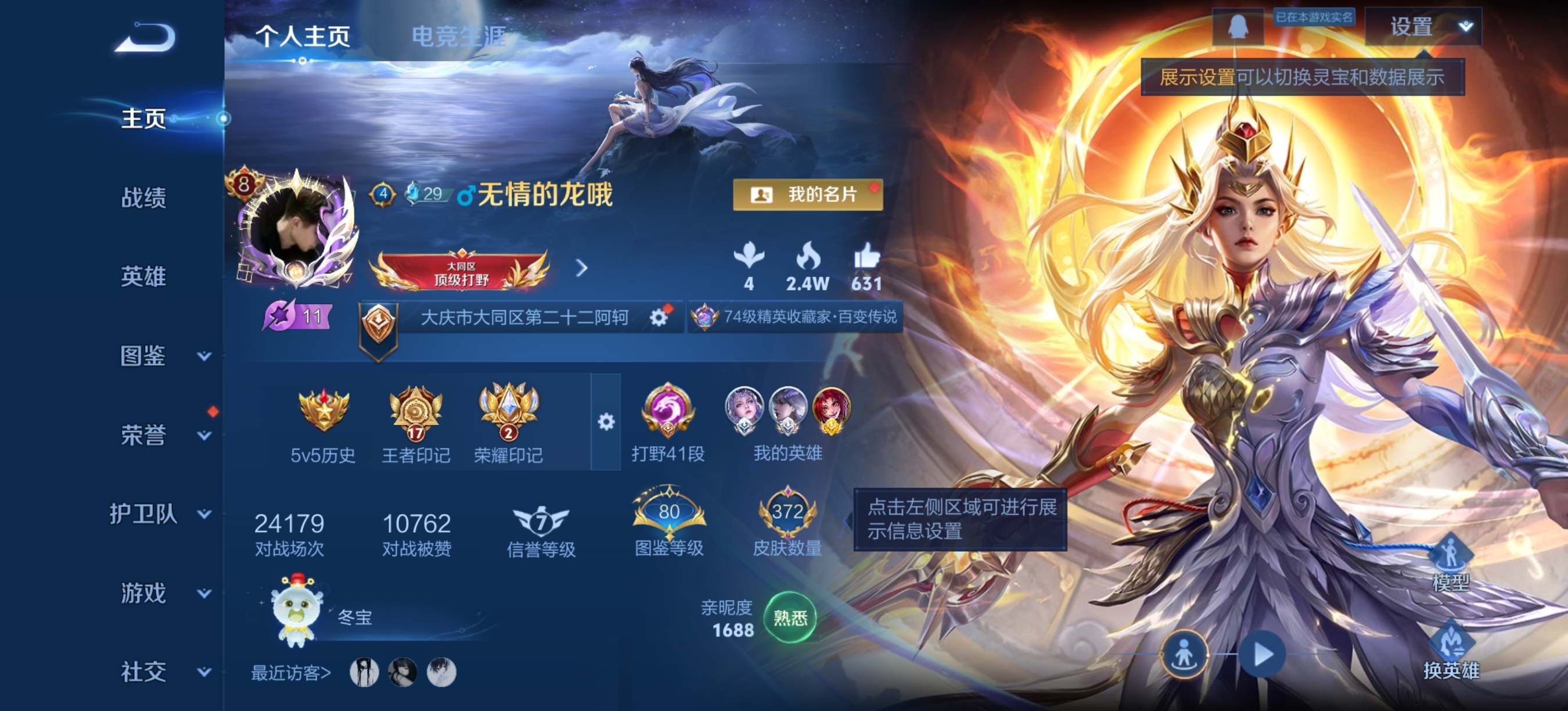 由于赛季更新段位以上号为准苹果Q【】英雄数量:124皮肤数量:122贵族等级:贵族V7荣耀典藏1传说品质5史诗品质28鸣剑曳影云霓雀翎淬星耀世久胜战神炽阳神光超时空战士男神威冰锋战神天才门将鬼剑武藏皇家上将金属风暴逐梦之星特工魅影无限星赏官黎明之约晚萤修罗水晶猎龙者紫霞仙子千年之狐五谷丰年火炮绅士高山流水真爱魔法航海奇遇记胡桃异想国云间偶戏李小龙冰冠公主鹰眼护卫魔术师星夜王子水果甜心妄想食味守护之力海滩派对乓乓大师海盐诗旅云中旅人大漠名商金庭之子沙漠行僧幻夜卜梦千军破阵圣弓游侠驱傩正仪缤纷绘卷探海日志演武夺筹瓷语鉴心万华元夜潮玩骑士王原初探秘者归虚梦演曜归虚梦演西施归虚梦演蒙犽鲨炮海盗猫阿尔法小营地号:99285223