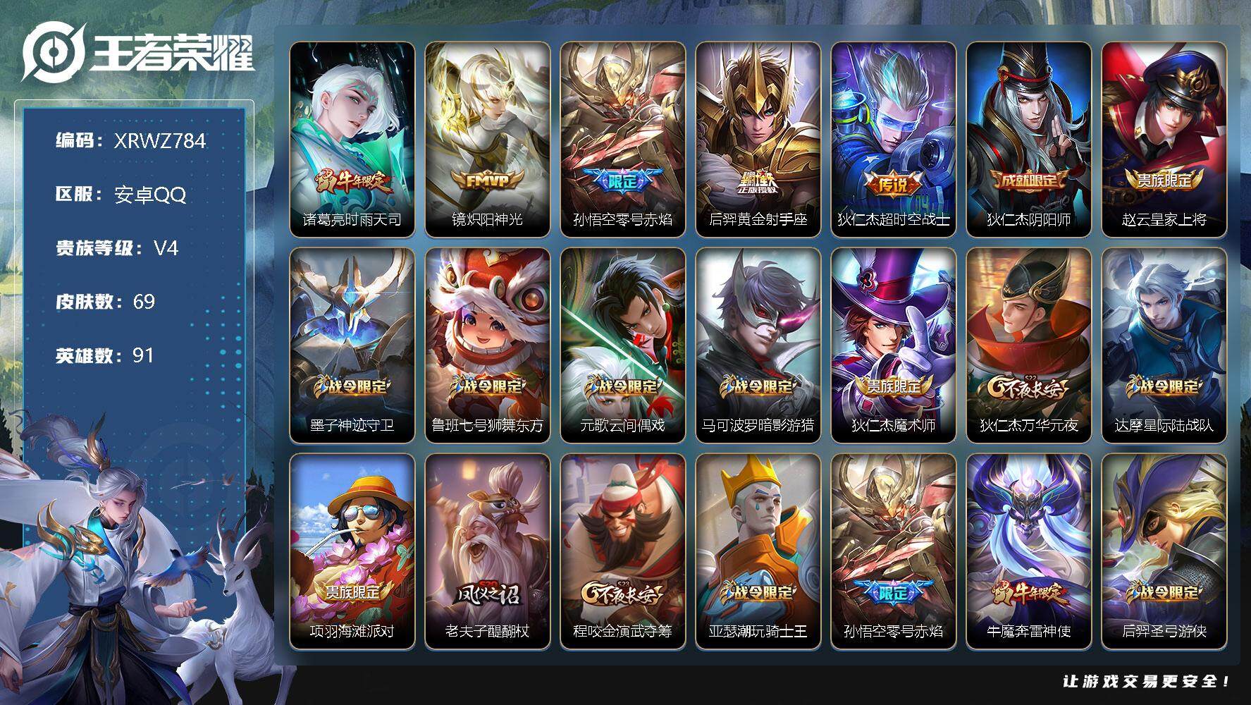 [12132132]Xr41477-安卓Q-V11-最强王者段位-126英雄-524皮肤-10典藏-4无双-4珍品传说-4星元-73传说-158史诗【荣耀典藏】:武则天英雄,孙悟空全息碎影,武则天倪克斯神谕,小乔天鹅之梦,鲁班七号星空梦想,李白鸣剑曳影,诸葛亮星域神启,貂蝉幻阙歌,韩信弑枪猎影,虞姬神鉴启示录,伽罗最初的交响【无双皮肤】:李白碎月剑心,韩信群星魔术团,曜器灵螭龙剑,诸葛亮天机白泽【珍品传说】:马可波罗怪盗基德,鲁班七号江户川柯南,嫦娥器灵落星盏,宫本武藏黑崎一护【传说皮肤】:干将莫邪千山共赴,元歌诡秘之主,大司命死亡执政官,司马懿九山相柳,后羿千劫归真,司空震愿照山河定,女娲愿照千秋盛,妲己愿照众生和,澜愿照九州拓,蔡文姬愿照福禄聚,虞姬愿照岁时盈,云缨幻光神枪,裴擒虎祥瑞亨通,桑启鸣野蒿,夏侯惇霜北刀,铠冥王哈迪斯,朵莉亚心动手记,墨子黄金天蝎座,典韦战鼓燎原,孙尚香乘龙问璇玑,孙策乘龙淬吴钩,赵云乘龙铭钟鼎,澜逐花归海,艾琳觅芳踪,露娜霜月吟,宫本武藏惊梅引,东皇太一灼幽烈阳,诸葛亮鹤羽星尊,公孙离记忆之芯,孙悟空齐天大圣,李信山海炽霜斩,吕布怒海麟威,李白诗剑行,狄仁杰神器狴犴令,百里守约碎云,马超无双飞将,蔡文姬花朝如约,女娲补天,孙策末日机甲,孙尚香异界灵契,貂蝉遇见胡旋,赵云淬星耀世,王昭君乞巧织情,西施游龙清影,李元芳飞鸢探春,公孙离祈雪灵祝,诸葛亮时雨天司,铠绛天战甲,镜炽阳神光,虞姬启明星使,关羽武圣,曜云鹰飞将,李信一念神魔,刘备时之恋人,伽罗太华,貂蝉猫影幻舞,张良黄金白羊座,干将莫邪久胜战神,虞姬云霓雀翎,达摩黄金狮子座,百里玄策白虎志,花木兰冠军飞将,梦奇胖达荣荣,后羿黄金射手座,诸葛亮武陵仙君,貂蝉仲夏夜之梦,李白凤求凰,孙尚香末日机甲,宫本武藏地狱之眼,孙悟空地狱火,吕布天魔缭乱,武则天海洋之心,狄仁杰超时空战士【限定皮肤】:白起狰,夏侯惇霜北刀,铠冥王哈迪斯,暃埋骨钱,蒙犽顽岩魄,蔡文姬夏日便利店,大乔绒语心约,虞姬夏日便利店,姜子牙天穹之誓,李白谪仙醉月,狄仁杰阴阳师,虞姬凯尔特女王,廉颇寅虎御盾,赵云皇家上将,赵云引擎之心,赵云龙胆,赵云百木心枪,墨子神迹守卫,嬴政优雅恋人,嬴政白昼王子,孙尚香异界灵契,鲁班七号狮舞东方,鲁班七号乒乒小将,庄周高山流水,高渐离死亡摇滚,高渐离玩趣恶龙,扁鹊奇幻香踪,白起夜都怪侠,芈月重明,王者荣耀 - QQ(安卓) -