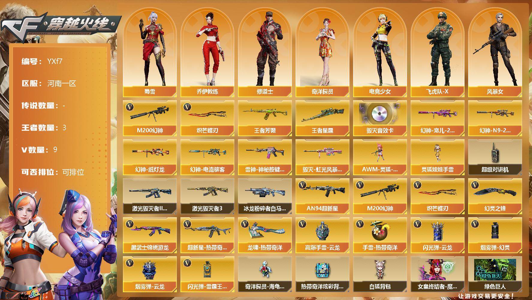 XH4866/可排位/北部/河北一区/可排位/【传奇2】【Lv102荣耀元帅】/VIP6/417V/5王者/6炫金/【北部极品爆破生化挑战三全号】/【幻神三件套十八皮】/【19个四防角色】/【六传说】/【四防传说】/传说艾莉莎/传说影煞/传说灵眸/传说光耀/传说暗裔/传说辉光/幻神/*2/幻神音效卡/幻神AGCFPLS24/幻神丹凤/幻神曹操/幻神Heartshot/幻神纸灯龙/幻神电流骇客/幻神冠军之幻/幻神N9/幻神宠儿/*2/幻神星火小队签名臻藏版/幻神荣耀世冠白鲨/幻神青鹤/幻神AGCFPLS17/幻神巅峰荣耀/幻神CFS2022/幻神黄忠/幻神周瑜/幻神动感闪耀/王者幻神/王者风神/【星神三件套六皮】/星神/星神音效卡/星神熬竹/星神漫游/星神璀璨/星神枪娘默/星神冠军之星/星神巅峰荣耀/王者星神/王者星霆/【白虎三件套九皮】/白虎/白虎音效卡/白虎虎啸/白虎白鲨CFPLS23/白虎霓虹机甲/白虎大汉风骨/白虎AGCFPLS20/白虎电玩粉兔/白虎虎牙/白虎暗星/白虎冠军之虎/王者白虎/白虎之魄/白虎电玩蓝兔/【QBZ金色蔷薇三件套八皮】/QBZ金色蔷薇/QBZ王者蔷薇音效卡/金色蔷薇Heartshot/金色蔷薇纸灯龙/金色蔷薇破浪逐光/QBZ传奇宠儿/QBZ巅峰荣耀/QBZ冠军之薇/QBZAGCFPLS19/QBZ荣耀世冠白鲨/金色蔷薇枪娘阿敏/王者芳薇/金色蔷薇古蛇迷踪/【四神兽】/白虎/青龙/朱雀/玄武/G36C幻影/幻影破浪逐光/柯尔特冠军之特/*2/柯尔特荣耀世冠/柯尔特竞技荣光/*2/柯尔特电竞装甲/USP雷暴/*2/USP神工天巧/*2/COP雷霆/COP堕天神/*3/COP幻灵/COP云龙/COP雷霆王者/*2/炽芒蝶刃/*2/冠军之刃/*2/【裁决三件套五皮】/裁决/裁决音效卡/裁决异化之源/裁决流光秘银/裁决巅峰荣耀/裁决凤灵/裁决百城联赛/【套装】/M200竞技荣光套/雷霆王者套/神工天巧套/堕天神套/雷暴套/夜魔套/【完美生化】/完美四防凌霄/完美四防隼/6盘龙/6炼狱/6烈龙/6修罗/斯泰尔蝴蝶/斯泰尔枪娘暗刃/异变清道夫/*2/毒蜂/黑龙吞噬者/KAC狂怒咆哮/双面神/【音效卡】/火线妹语音包/白鲨语音包/绝迹语音包/雷神音效卡/黑骑士音效卡/火麒麟音效卡/毁灭音效卡/黑龙音效卡/极光音效卡/烈火动感闪耀音效卡/超新星热带奇洋音效卡/天神动感闪耀音效卡/烈龙云海游龙音效卡/擎天云海游龙音效卡/屠龙动感闪耀音效卡/龙啸热带奇洋音效卡/【枪皮】/雷神炽焰魔龙/毁灭枪娘格雷姐妹/雷神航星/黑骑士白马银枪/烈虎动感闪耀/雷神Heartshot/火麒麟枪娘凯萨琳/雷神烈虎/毁灭Heartshot/无影神兵利器/雷神巅峰荣耀/雷神机甲刑天/黑骑士摸金校尉/黑骑士伏羲/雷神脉冲核心/火麒麟白虎/死神机甲核心/火麒麟巅峰荣耀/火麒麟盘古/黑骑士电玩青兔/荣耀之魄/荣耀之怒/【四防角色】/电竞教官云悠悠/荒漠琉璃/鹰/雨棠/王者春/王者葵貂蝉/王者零国色天香/王者魅影/王者葵惊若翩鸿/王者潘多拉/王者玲珑小乔/王者涂鸦/王者沙漠玫瑰/王者影豹/【小人枪】/朱雀蛇隐宗/雷神精英刀锋/白虎迷你小艾/火麒麟绝迹/金色蔷薇空/炼狱迷你小刚/炽火炎龙/黄金猫猫手套/金刚伞/【挑战】/白狐套/6黑骑士/致命乱世超越Max/地狱征服者超越Max/冰龙粉碎者白马银枪/机甲撕裂者111/激光毁灭者111/末日审判者111/KAC圣炎切割者111/巨龙咆哮111【道具】/永久烟雾头/护目镜/超级背包/各种戒指/各种光效/各种玩偶/永久AC/永久雷包/细节看图/【此账号封过十年已解】/