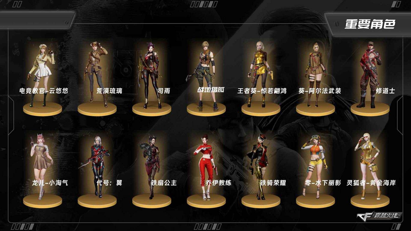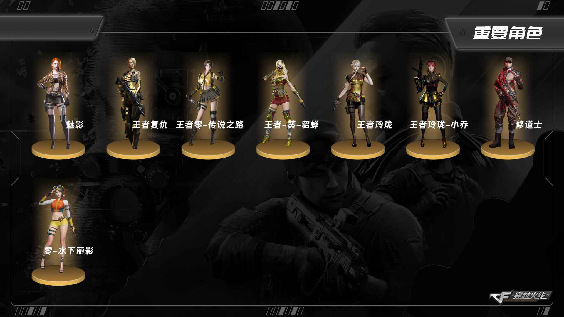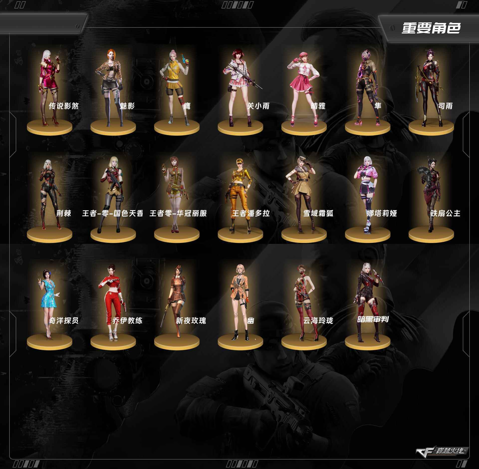 【角色】:奇洋探员,乔伊教练,修道士,电竞少女,飞虎队-X,风暴女,娟娟,卡塔琳娜,0号玩家,灵狐者-X,灵狐者-黄金海岸,灵狐者-七夕宝贝,曼陀罗-X,潘多拉-X,潘