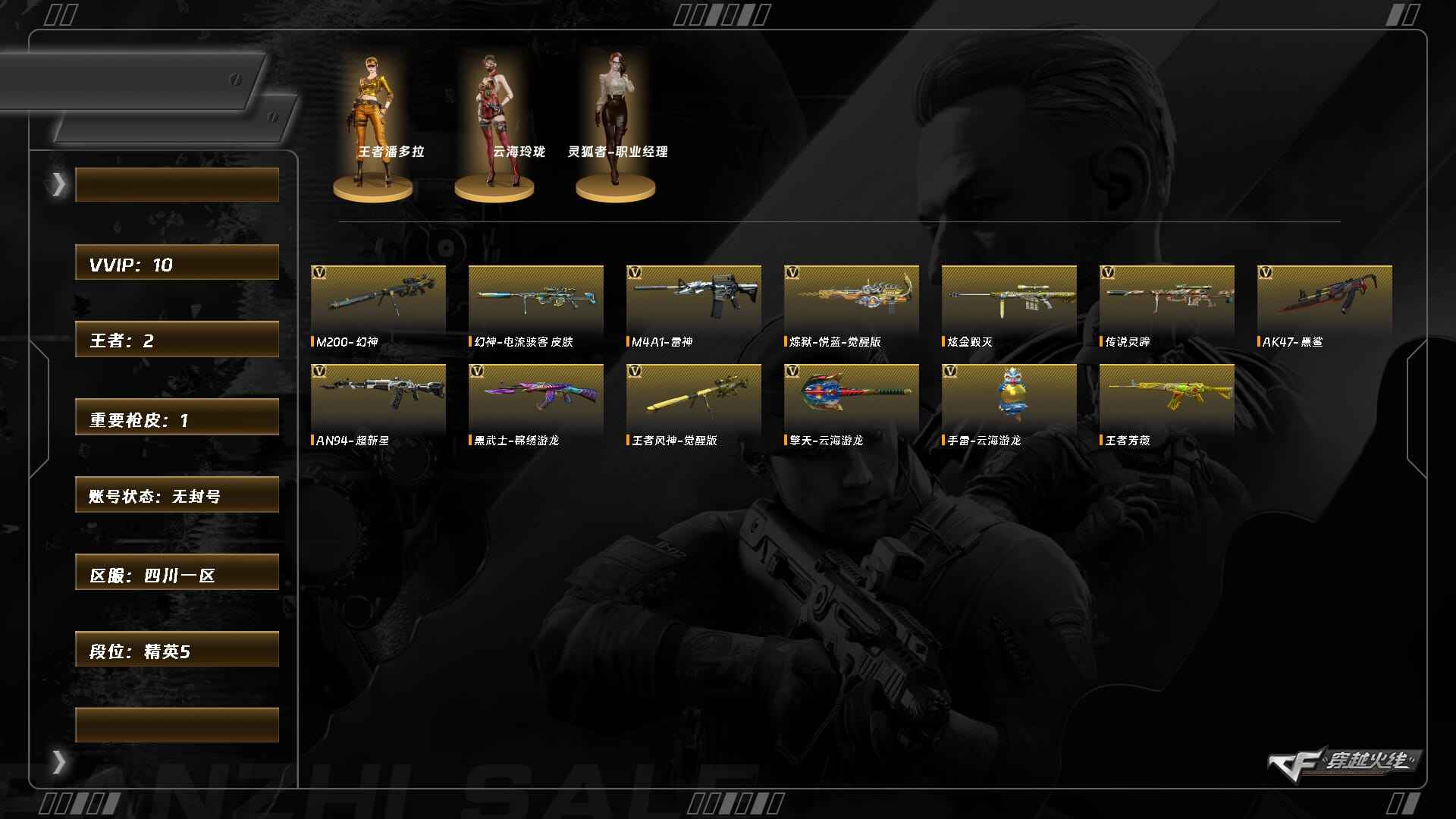 [16594229]XH9793/西部/四川一区/【精英5】/Lv.69 上校2/10V/传说灵眸/幻神/幻神电流骇客/王者风神/王者芳薇/未觉醒/雷神/黑鲨/黑武士锦绣游龙/炼狱/猫猫手套/【四防角色】/王者潘多拉/灵狐者职业经理/【小人枪】/雷神精英刀锋/牛牛AK47/【道具】/永久烟雾头/各种光效/各种玩偶/永久AC/永久雷包/细节看图/【此账号未被封过十年】穿越火线 - 西部战区 -