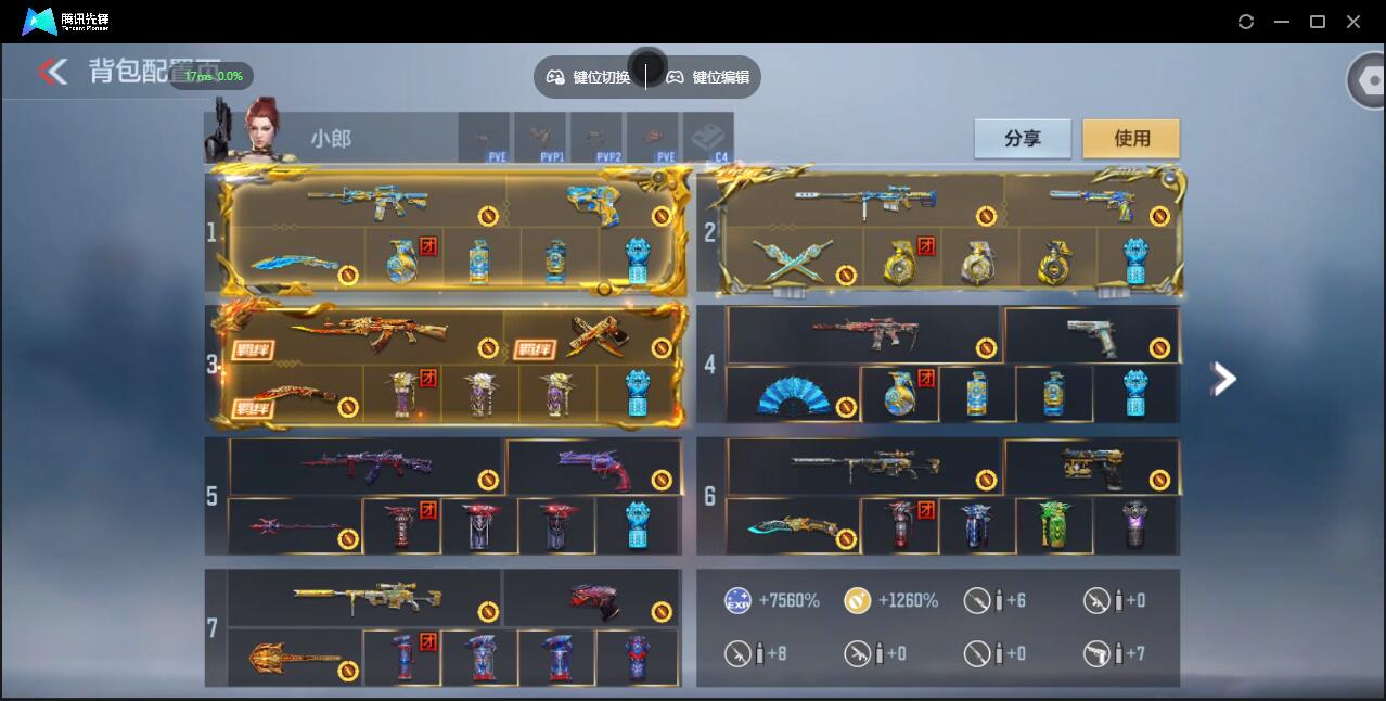 4英雄角色数-178英雄武器数【王者系列】:王者之心*2,王者之锋,王者之魂*2【热门武器】:81式-光明之神,M4A1-七色宝葫*3【角色】:葵,关小雨,炽天使-X,零-新生【英雄武器】:AK47-无影,AK47-火麒麟*2,AK47-猩红传说,AK47-燎天净火,AK47-雷麒麟,AK47-心动次元,AK47-血武士,AK47-黑鲨,AK47-春雅觉醒,AK47-木兰*3,AK47-塔罗牌觉醒,AK47-谜城烟火*2,M4A1-雷神*2,M4A1-黑龙,M4A1-死神,M4A1-玫瑰精灵,M4A1-樱龙·二觉,M4A1-七色宝葫*3,M4A1-海骑士,M4A1-心动次元,M4A1