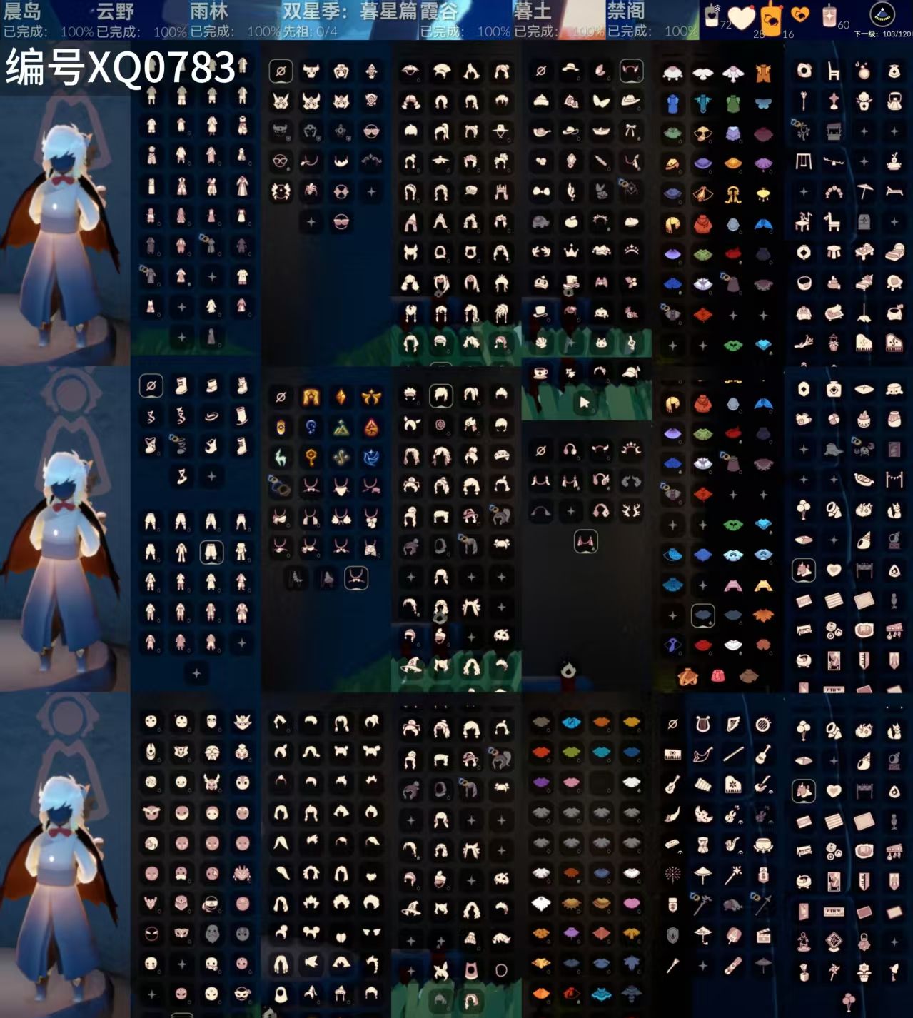 [11366678]【XQ0783】渠道 :小米11季白枭巫师福娃线框蝙蝠蛛网白雪超多热门物品礼包伪0最高:0.903最矮:12 903目前:1.000资源:蜡烛:72爱心:28翼数量:103已经毕业地图:全部毕业已经毕业季节:表演季,破晓季,欧若拉季,追忆季半,夜行季,拾光季,归巢季,九色鹿季,筑巢季,二重奏季,青鸟季稀有礼包:连衣裙,优雅领巾,海洋发型,巫师帽,朋克发型,桔子,小狗头饰,贝壳发卡,玉兔,星月头冠,彩虹耳机,巫树犄角,TGC斗篷,新春福娃,线框斗篷,蝙蝠斗,蛛网斗篷,皮皮猫斗,白雪斗篷,风旅斗篷,雏鸟之琴,音韵吉他,祥云纸伞,秋千,跷跷板,花憩茶桌,小船,冥龙南瓜,皮皮猫,周年抱枕热门物品:白枭,白棉裤,搓澡巾,灯笼裤,宝宝裤,武士裤,矮人面具,黑脸,公主头,粗辫,书虫,正太,高马尾,明制帽,箬笠,花环,虚荣,樱花,猫猫头,红耳机,竖琴,吉他,雨伞