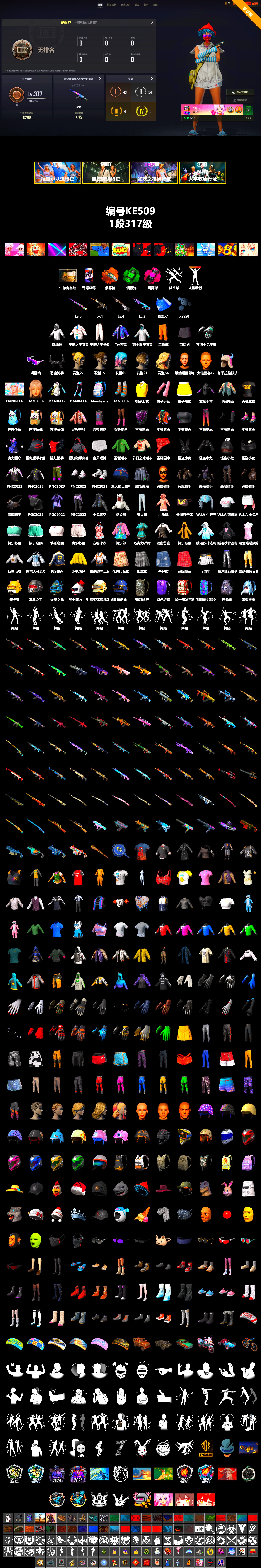 KE509/可排位/1段/317级/7000聚合物/5级彩虹至上M24/4级赛博MK12/4级恶魔ACE/3级魔咒之力MK12/绿色烟雾/粉色烟雾/滑雪镜/丸子头/双马尾/其他细节看图/绝地求生 - 全区服 -