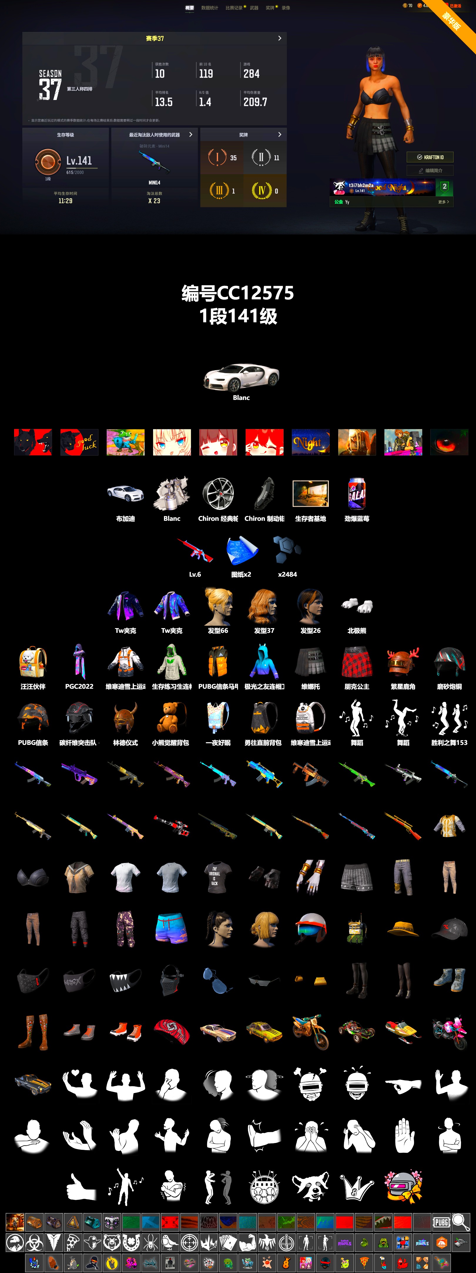 CC12575/可排位/1段/141级/2张图纸/布加迪/6级无信号M4/白熊绝地求生 - 全区服 -