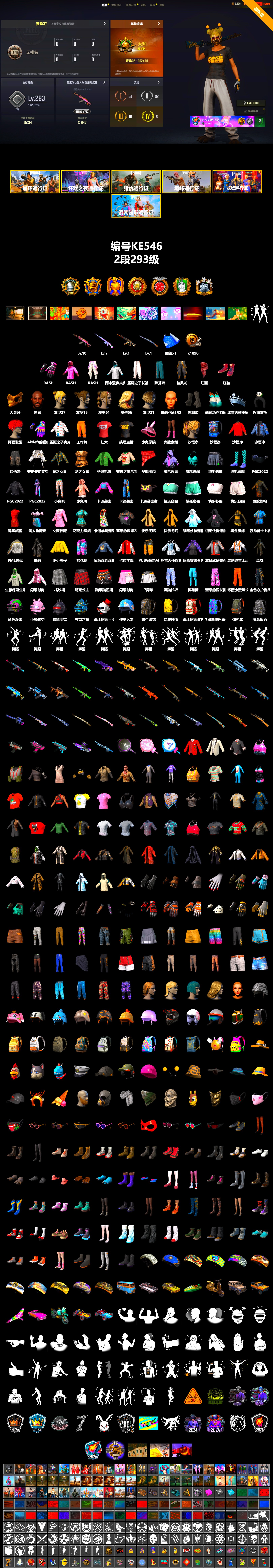 KE546/可排位/2段/293级/10级火麒麟762/7级玩偶大炮/1级猪八戒M416/1级猛虎98K/金木/黑鬼/细节看截图绝地求生 - 全区服 -