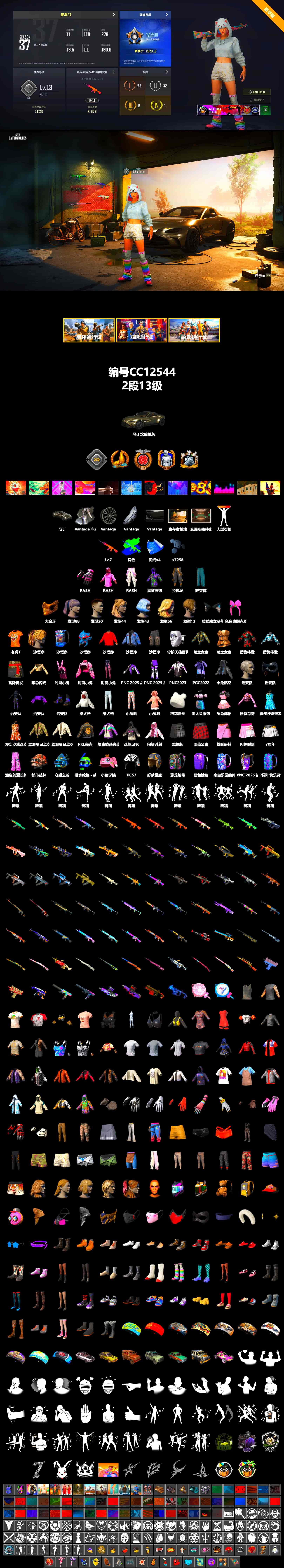 CC12544/可排位/2段/13级/4张图纸/7000聚合物/阿斯顿马丁跑车/7级南瓜M4/南瓜M4异色/粉战神/萨芬裤/金面/绝地求生 - 全区服 -