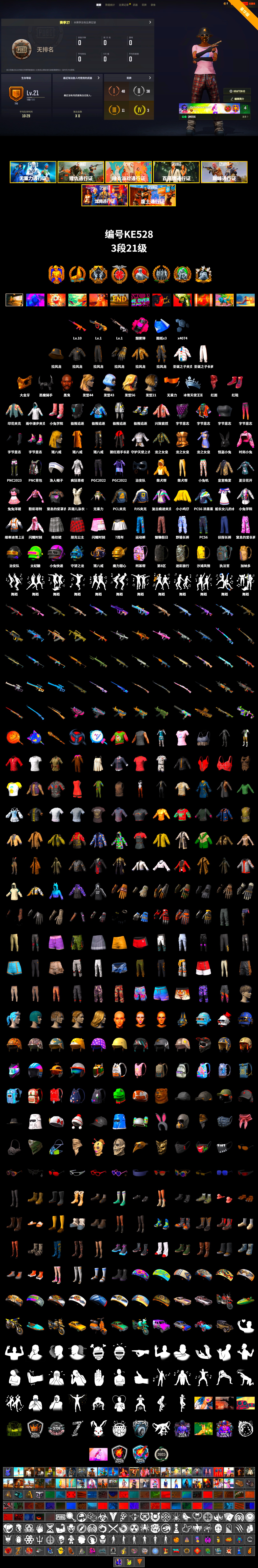 KE528/可排位/3张图纸/3段/21级/10级南瓜M4/1级赛博MK12/1级弥诺陶洛斯AUG/粉色烟雾/金面/红面巾/柏林鞋/其他细节看图/绝地求生 - 全区服 -