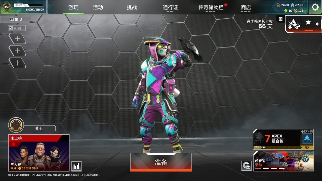 GK7010/带Steam/1传/猛禽之爪/+死亡之箱/27金皮/27上赛季满【枪皮】外域雪崩/韩流之恋/为荣誉而战/白骨藏家/【皮肤】天生亡命徒/流线滑翔者/静电恍惚/【详情看截图】APEX英雄 - 通用 -
