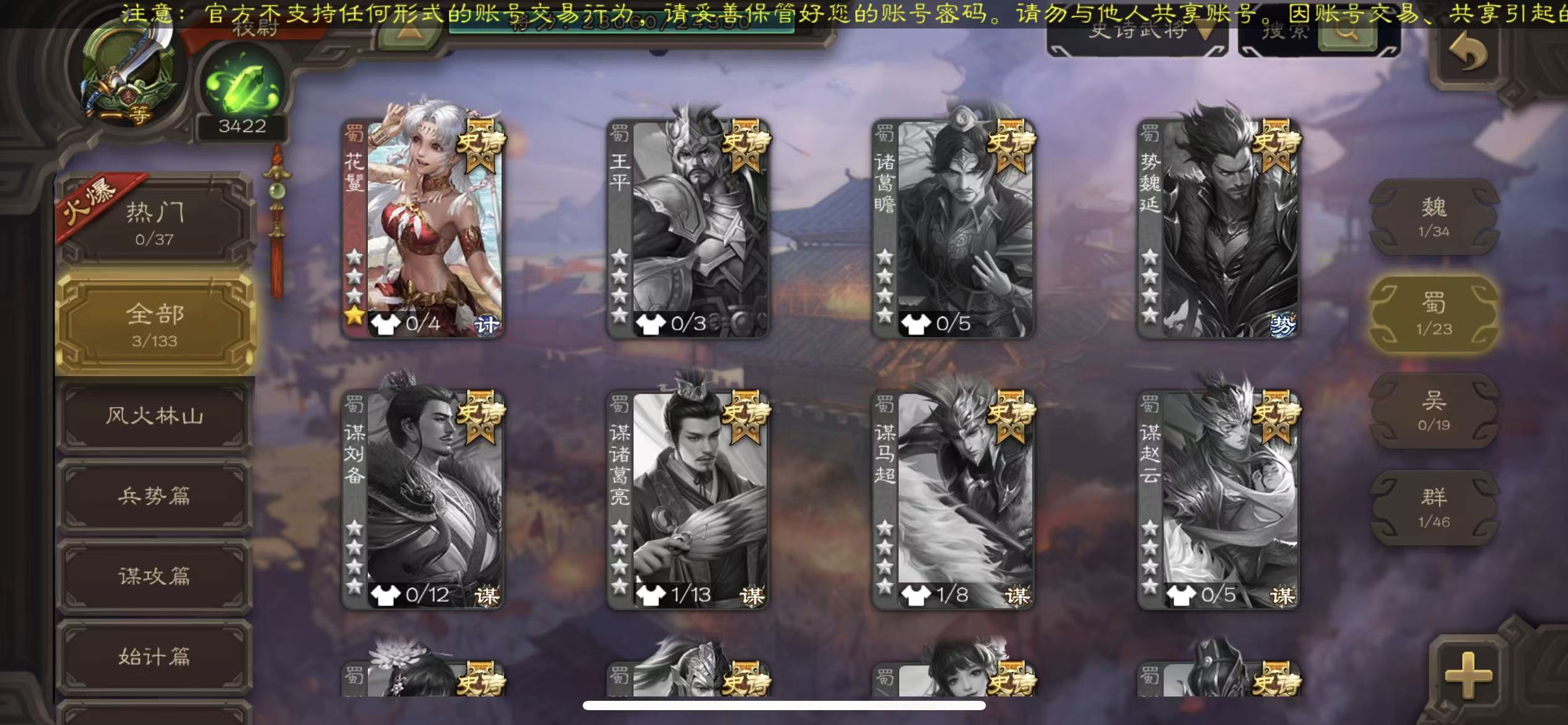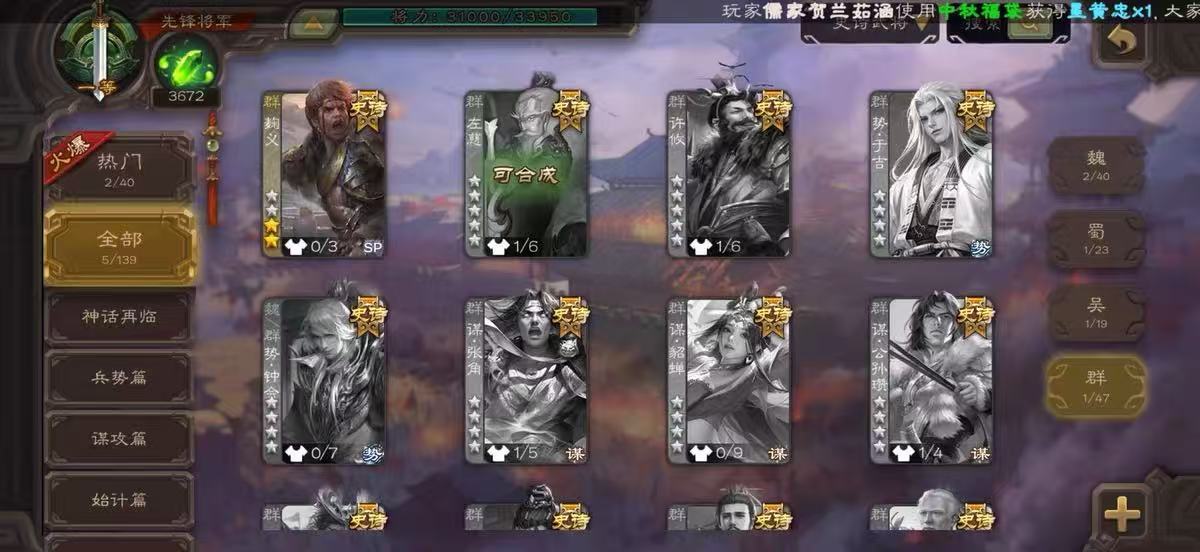 领军9史诗戏子谋马花花赵嚷沙和尚+5000多魂三国杀 - 三国杀移动版 - 默认区服