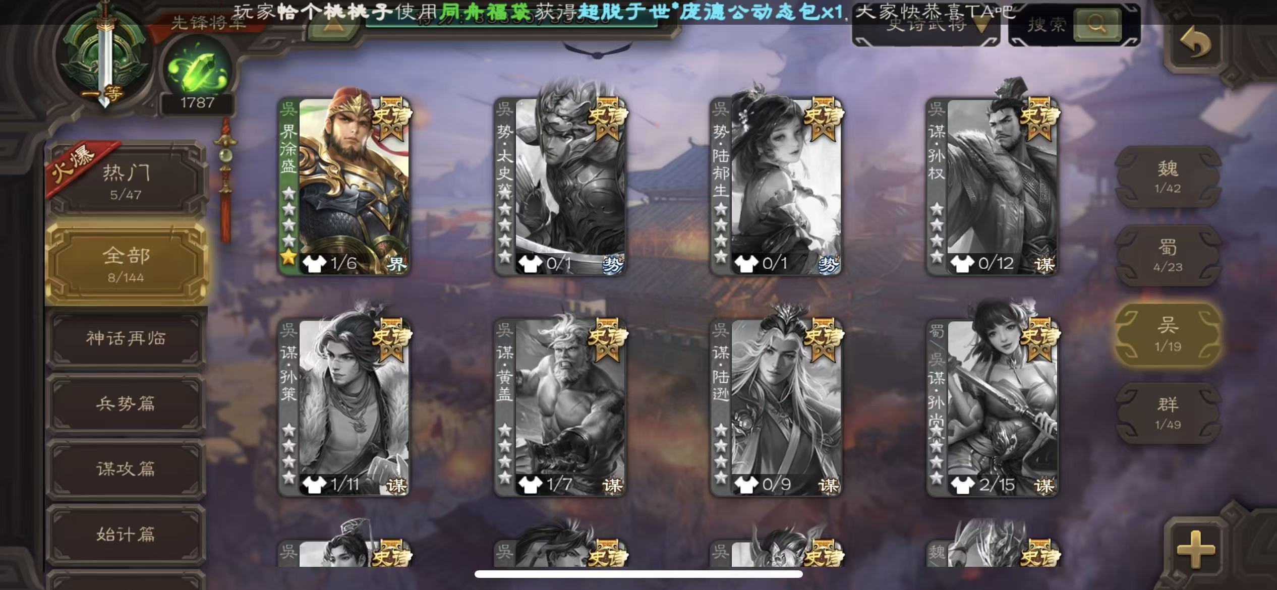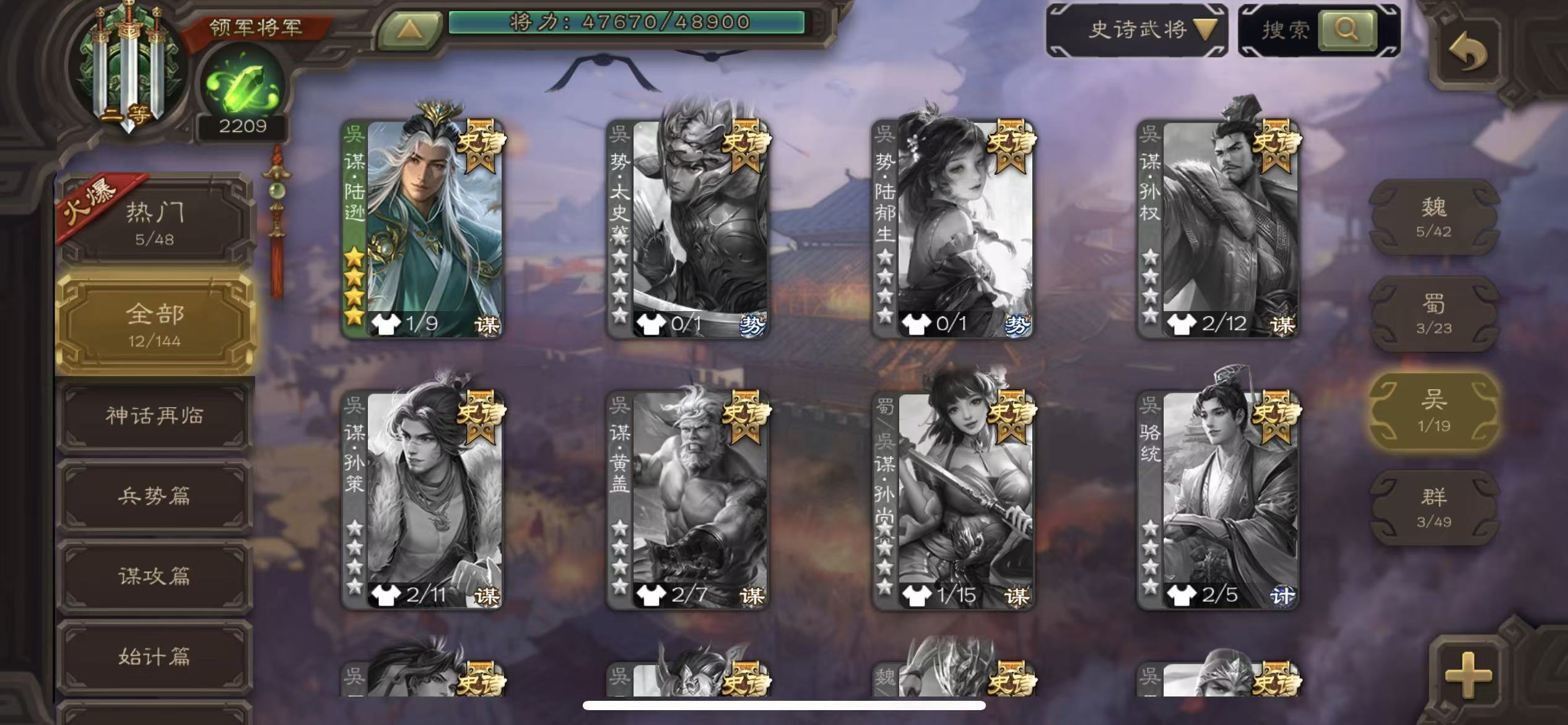 领军34宝珠曹髦谋陆逊郑玄星黄忠12史诗三国杀 - 三国杀移动版 - 默认区服