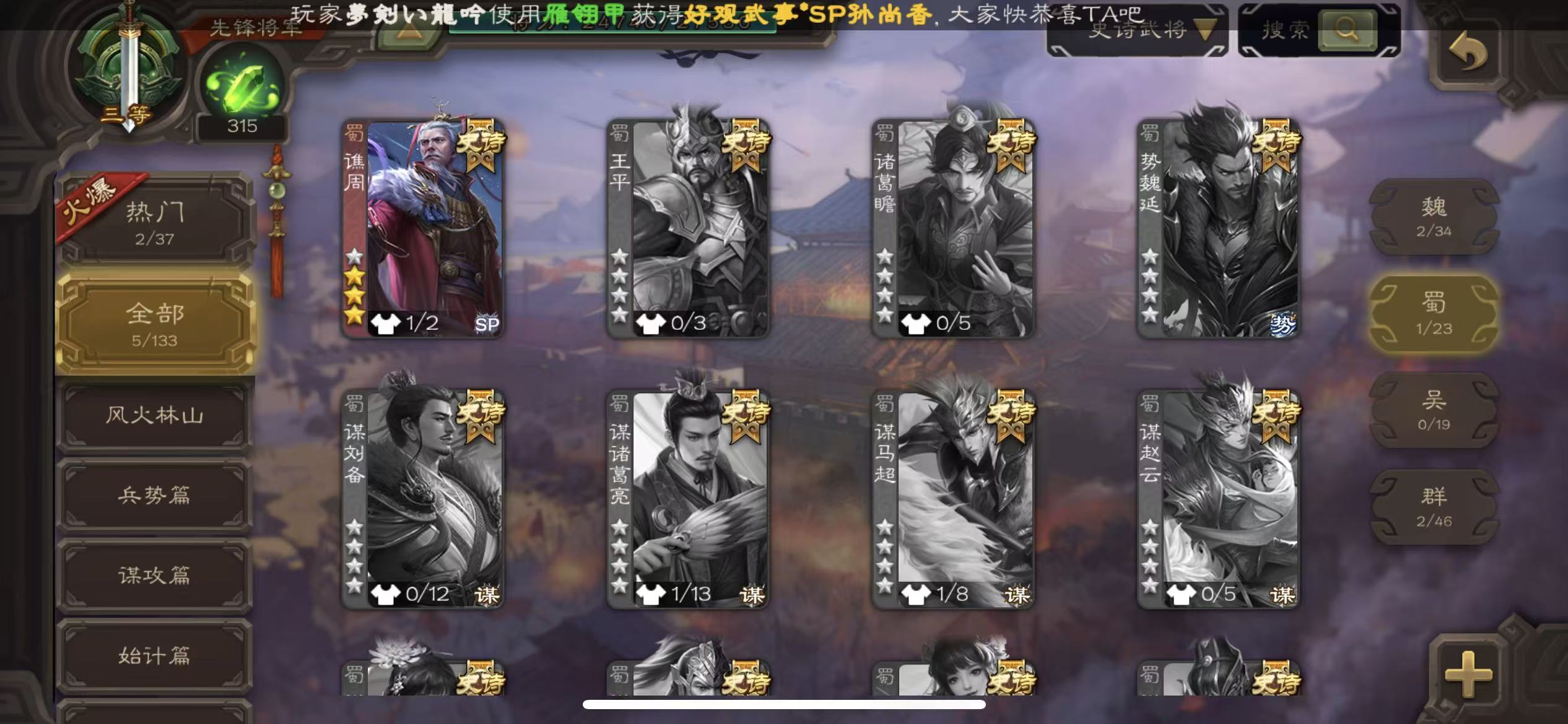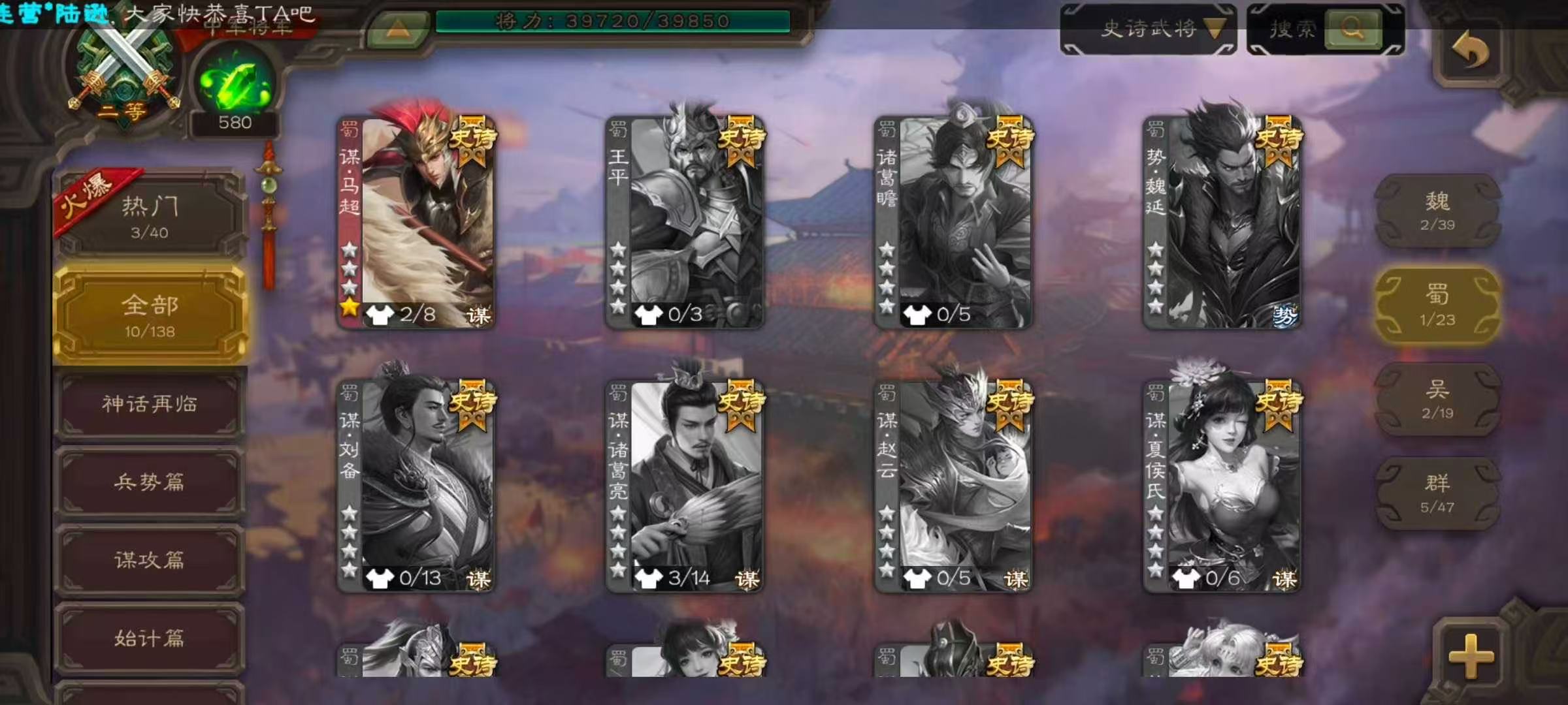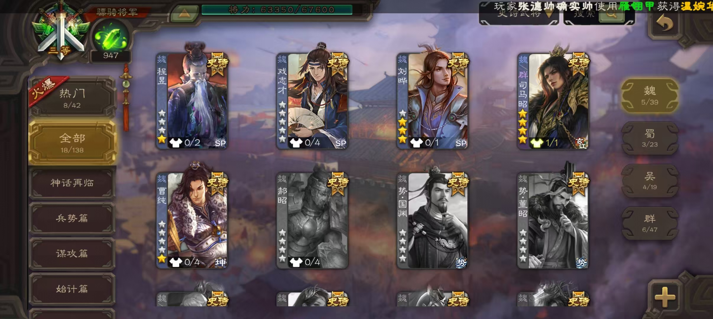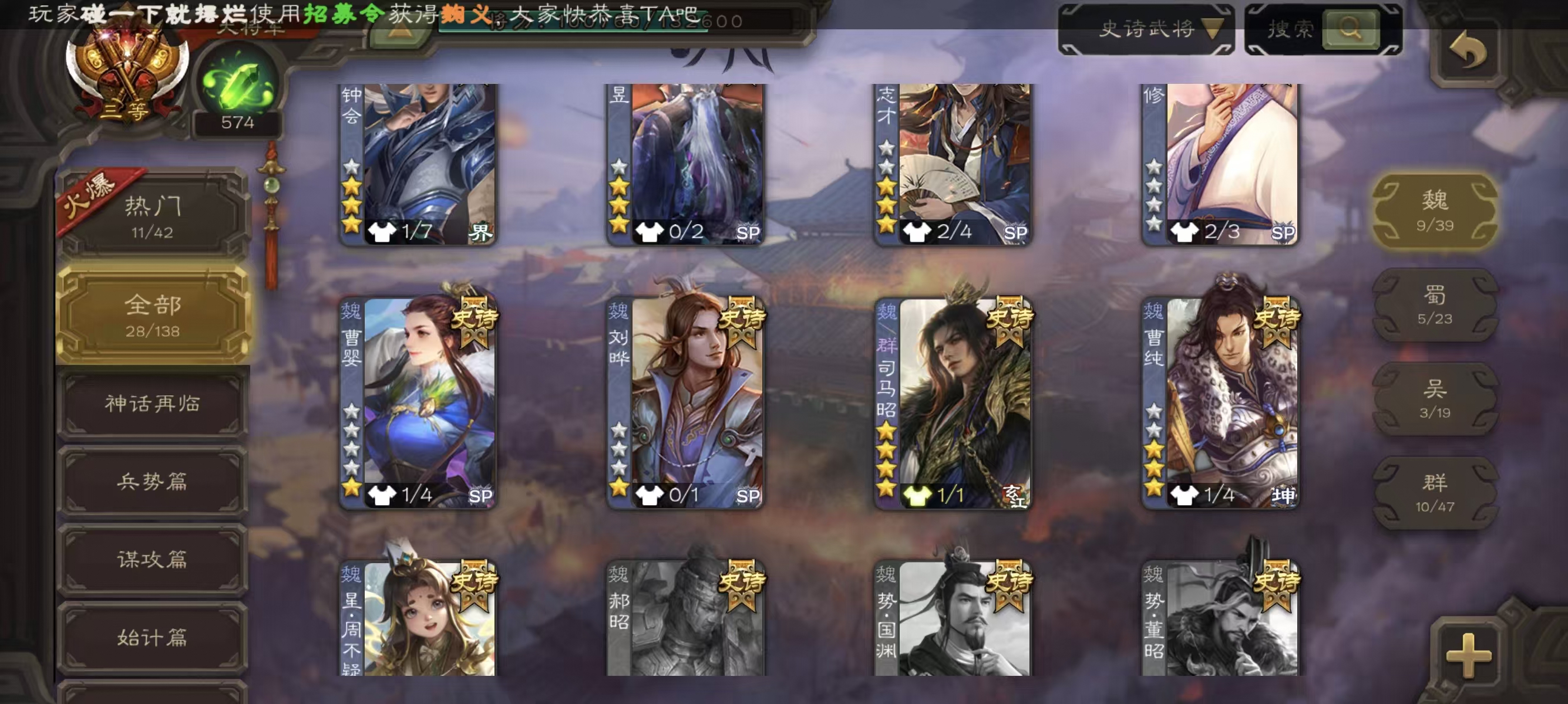 大将军动态老刘司马昭28史诗三国杀 - 三国杀移动版 - 默认区服