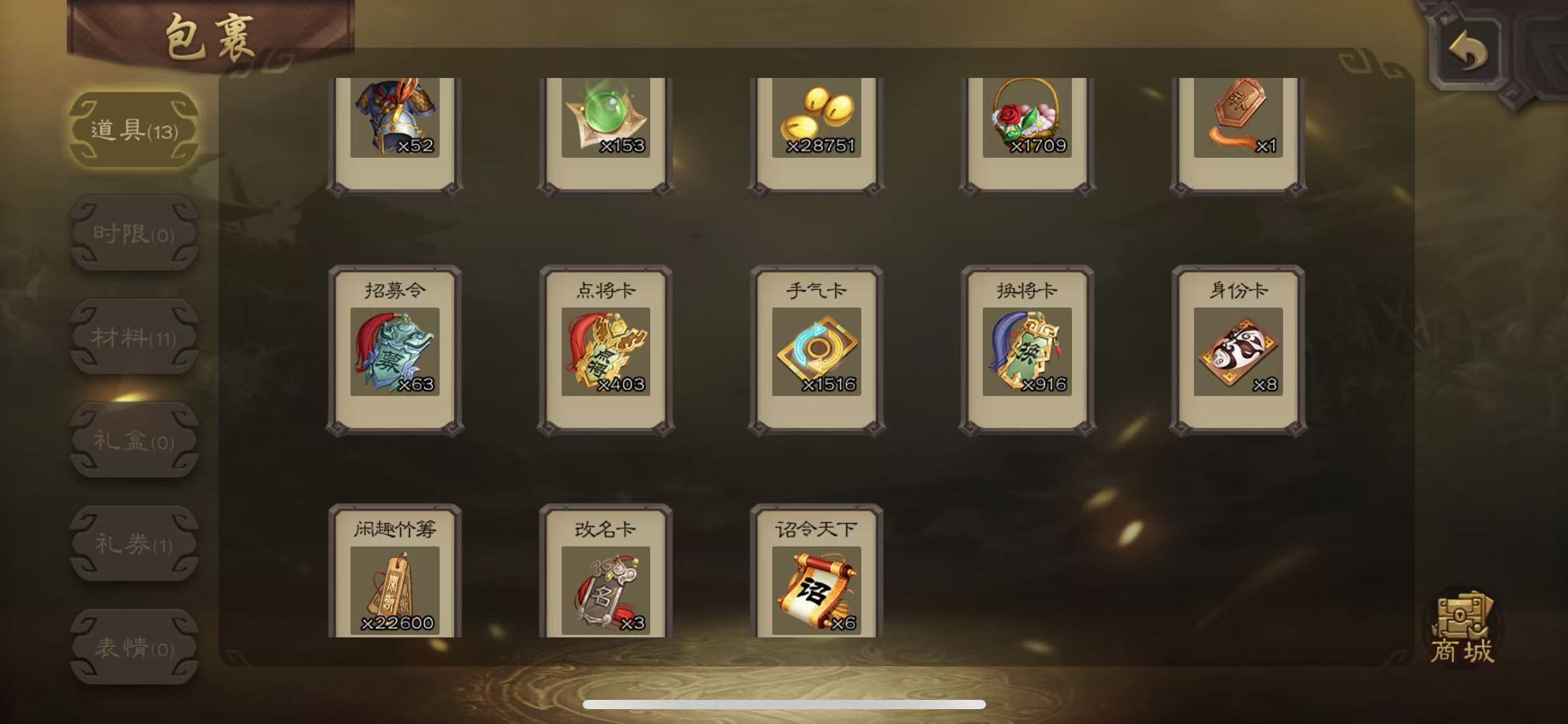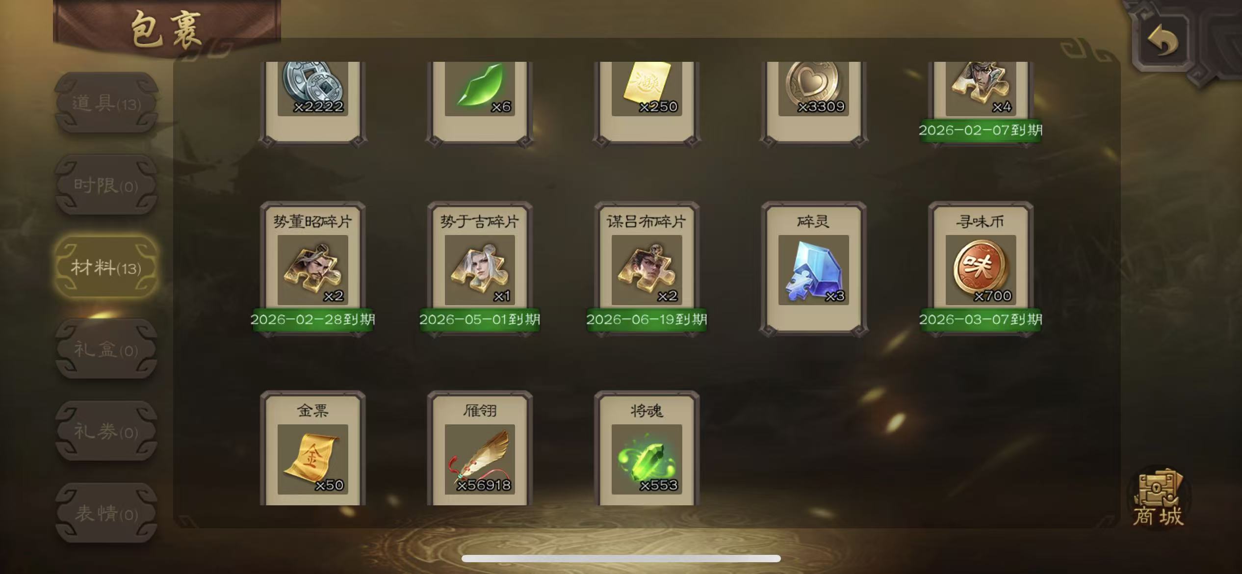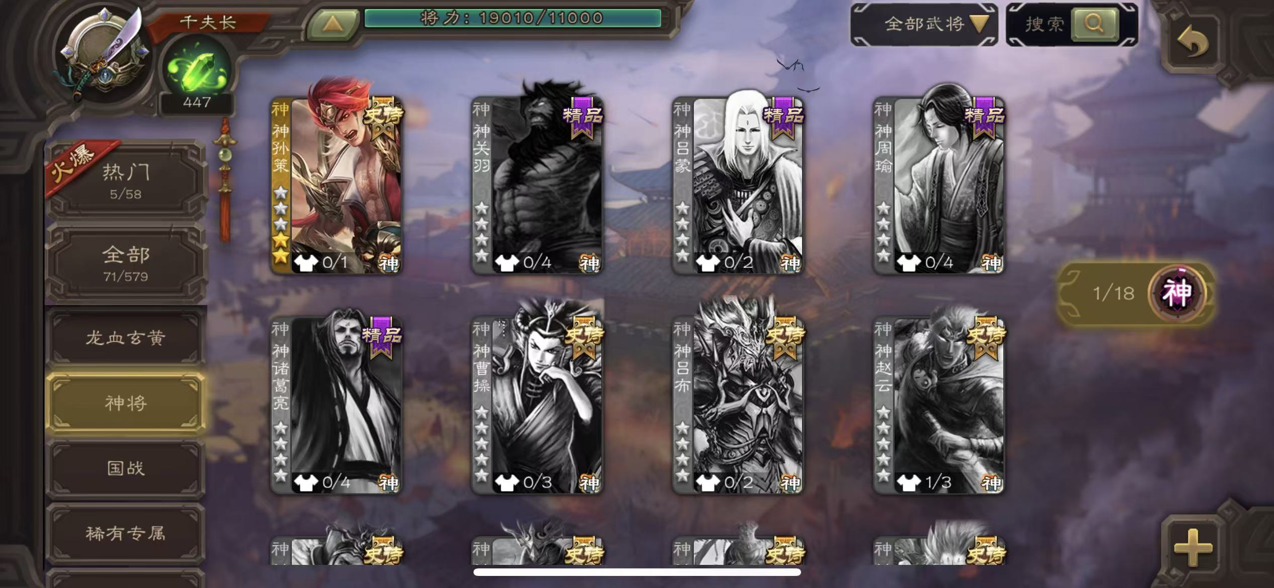 千夫70宝珠谋关羽5000将魂63招募令三卡