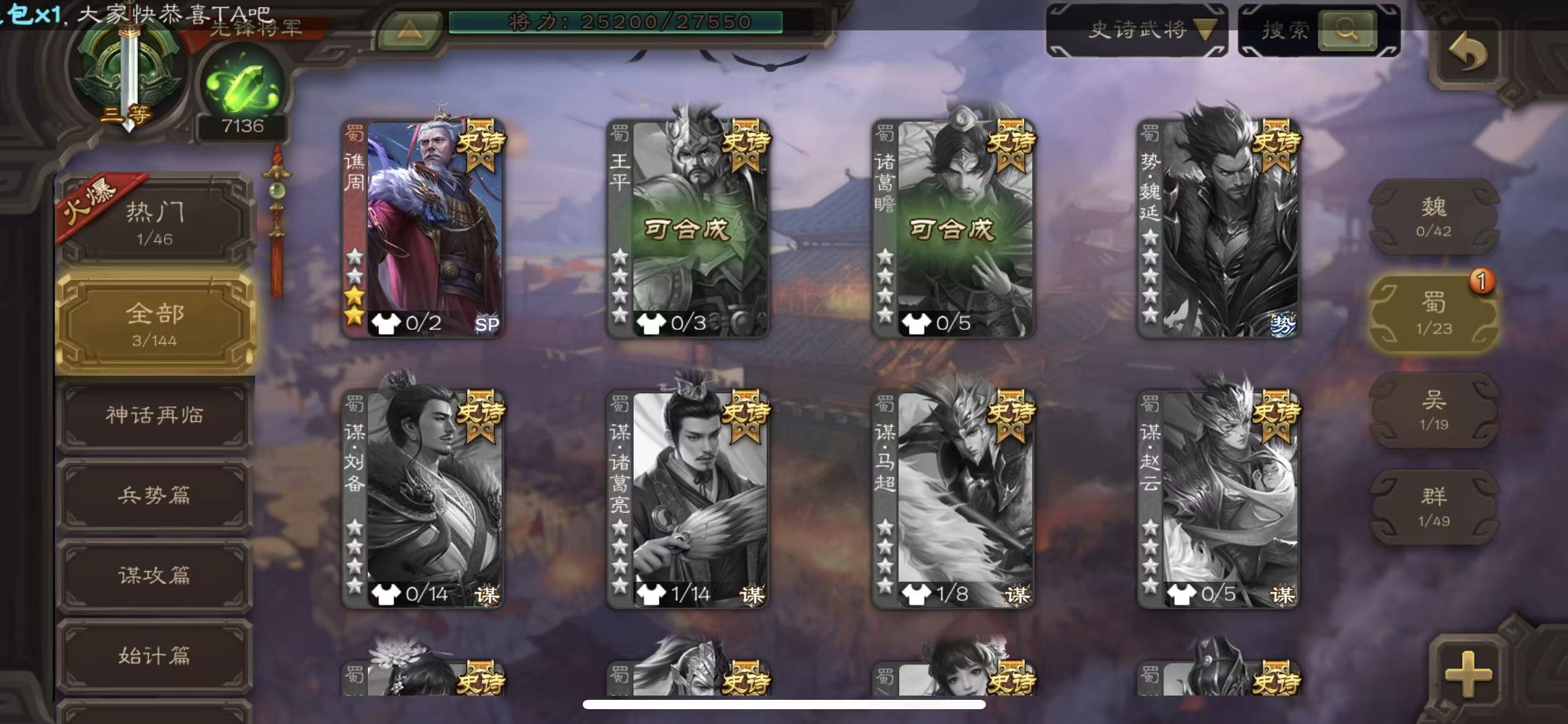 士兵势邓艾戏子王粲神刘备6万羽毛114招募令三卡三国杀 - 三国杀移动版 - 默认区服