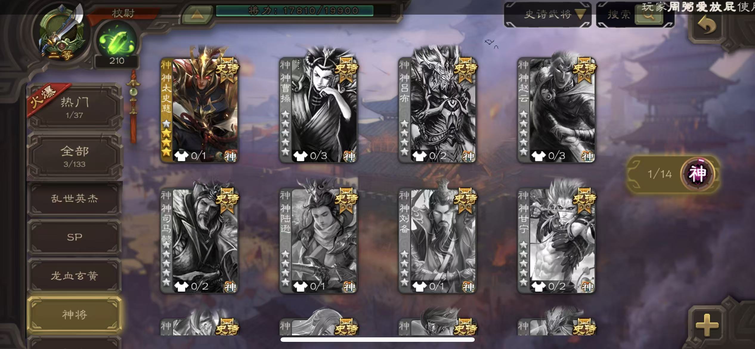 士兵神郭嘉56宝珠(可换小鸟)7.26万羽毛8000将魂203雁翎甲138招募令三卡4500菜篮子三国杀 - 三国杀移动版 - 默认区服