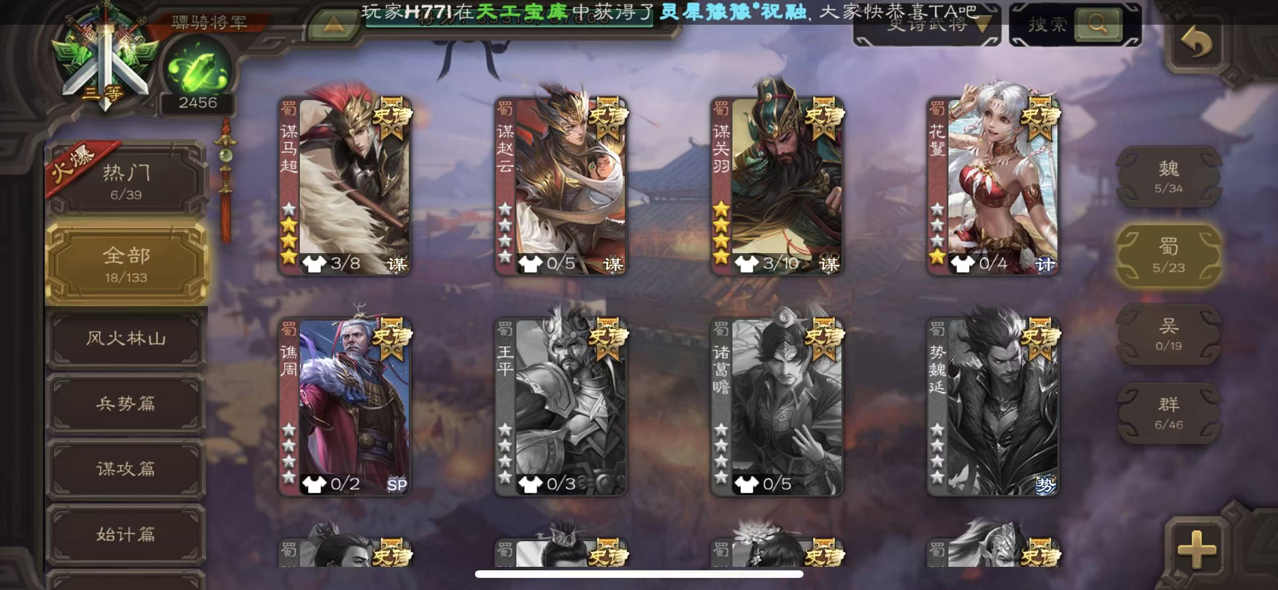 二等骠骑动态大宝动态谋孙策动态神赵云动态动态谋张飞天子令曹丕界李儒19史诗三国杀 - 三国杀移动版 - 默认区服