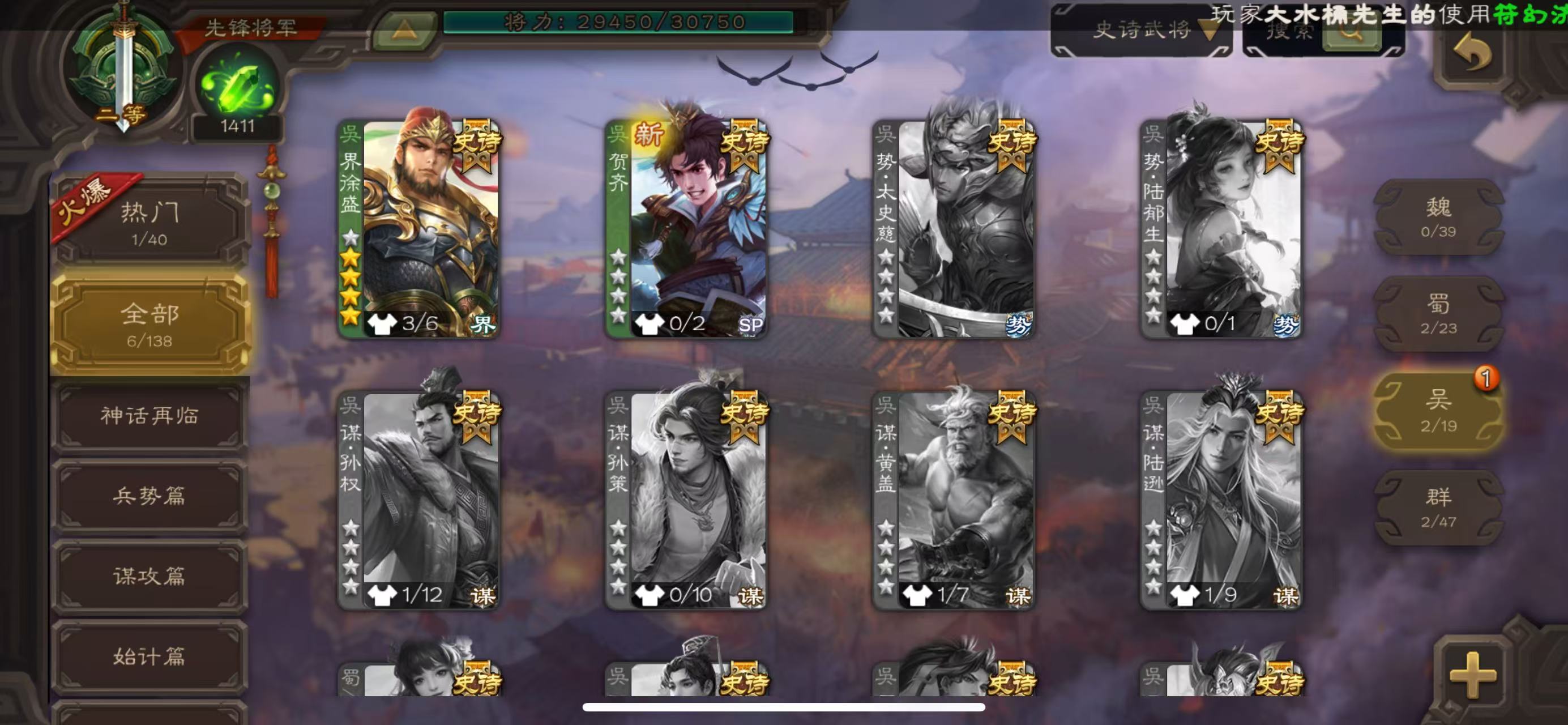 领军动司马昭谋陆逊多史诗三国杀 - 三国杀移动版 - 默认区服