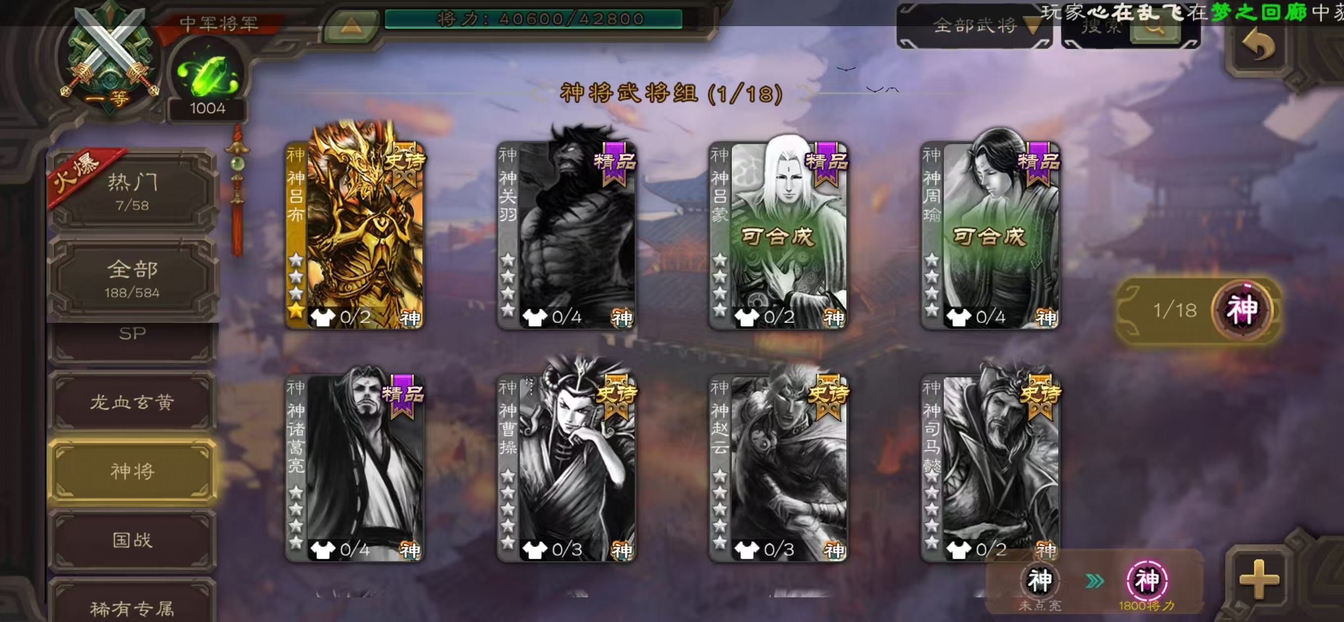 士兵神鲁肃20宝珠可换大宝2000将魂三卡