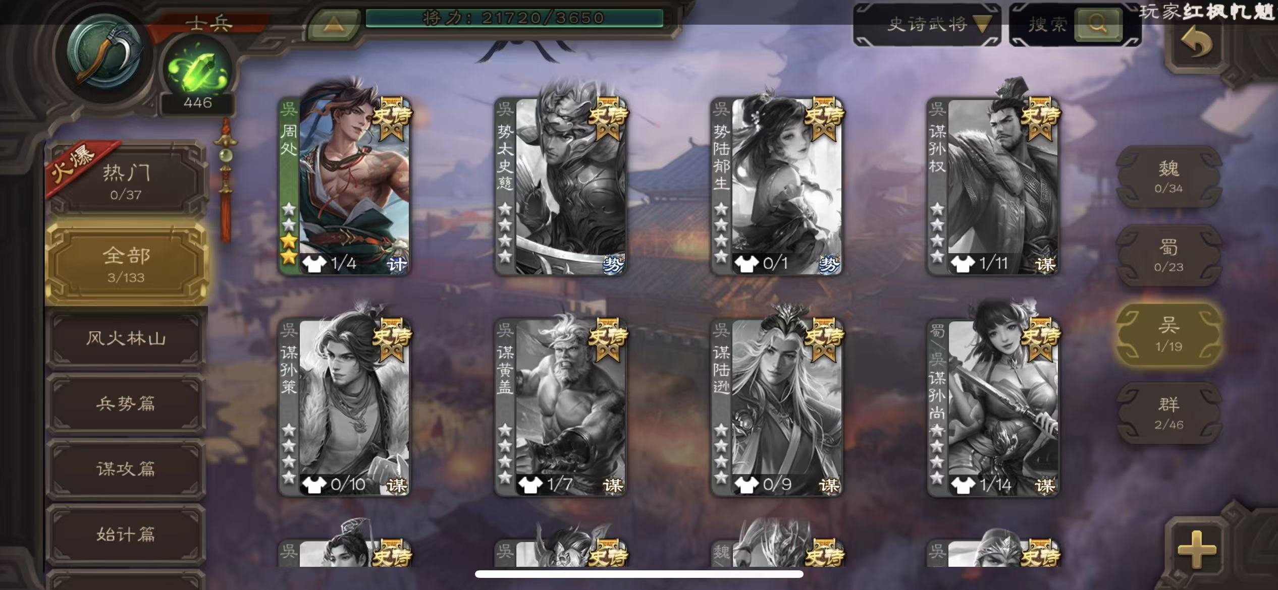 百夫长4史诗大宝界徐盛7300将魂7.1万羽毛135招募令三卡三国杀 - 三国杀移动版 - 默认区服