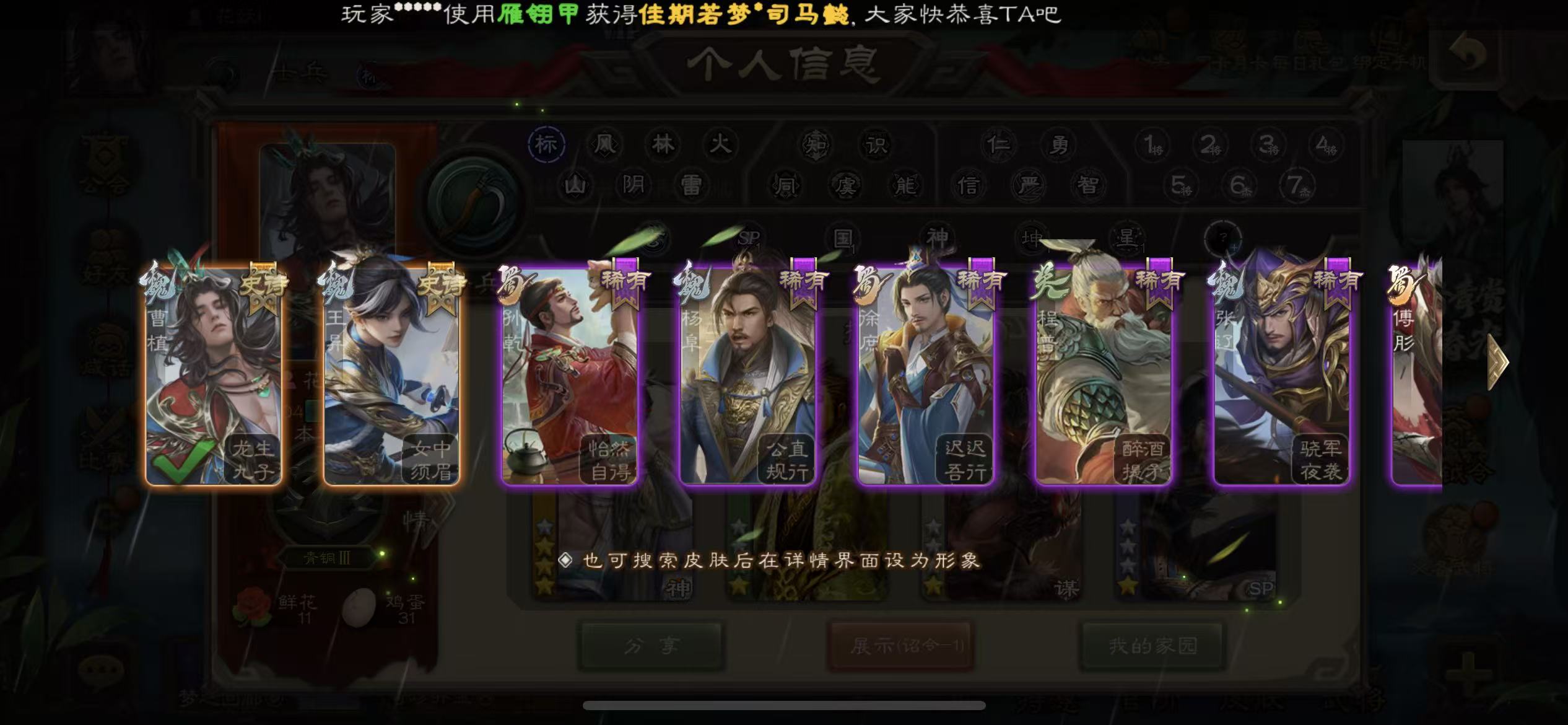 骠骑 双形态司马昭 动态大宝 双动皮界李儒 动态白马 张让 骆驼 戏子 谋夏侯惇等16史诗三国杀 - 三国杀移动版 - 默认区服