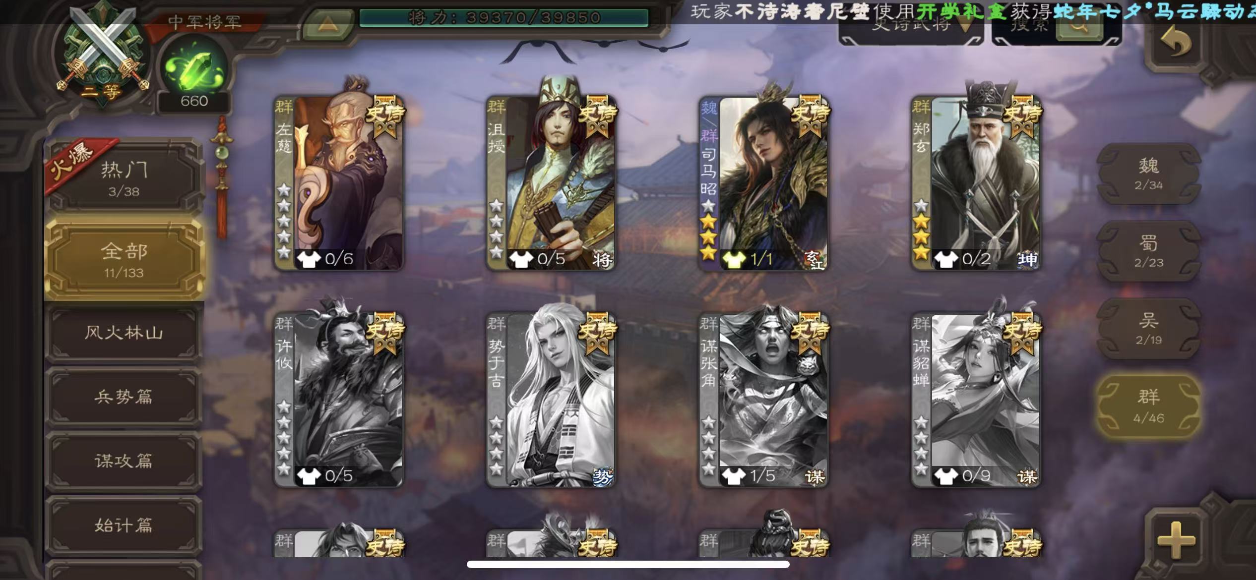 大将军34史诗动态老刘刘焉动态小鸟动态孙寒华回廊动态界钟会动态司马昭动态留赞动态界李儒裴秀界左慈白马骆驼许攸大宝三卡三国杀 - 三国杀移动版 - 默认区服