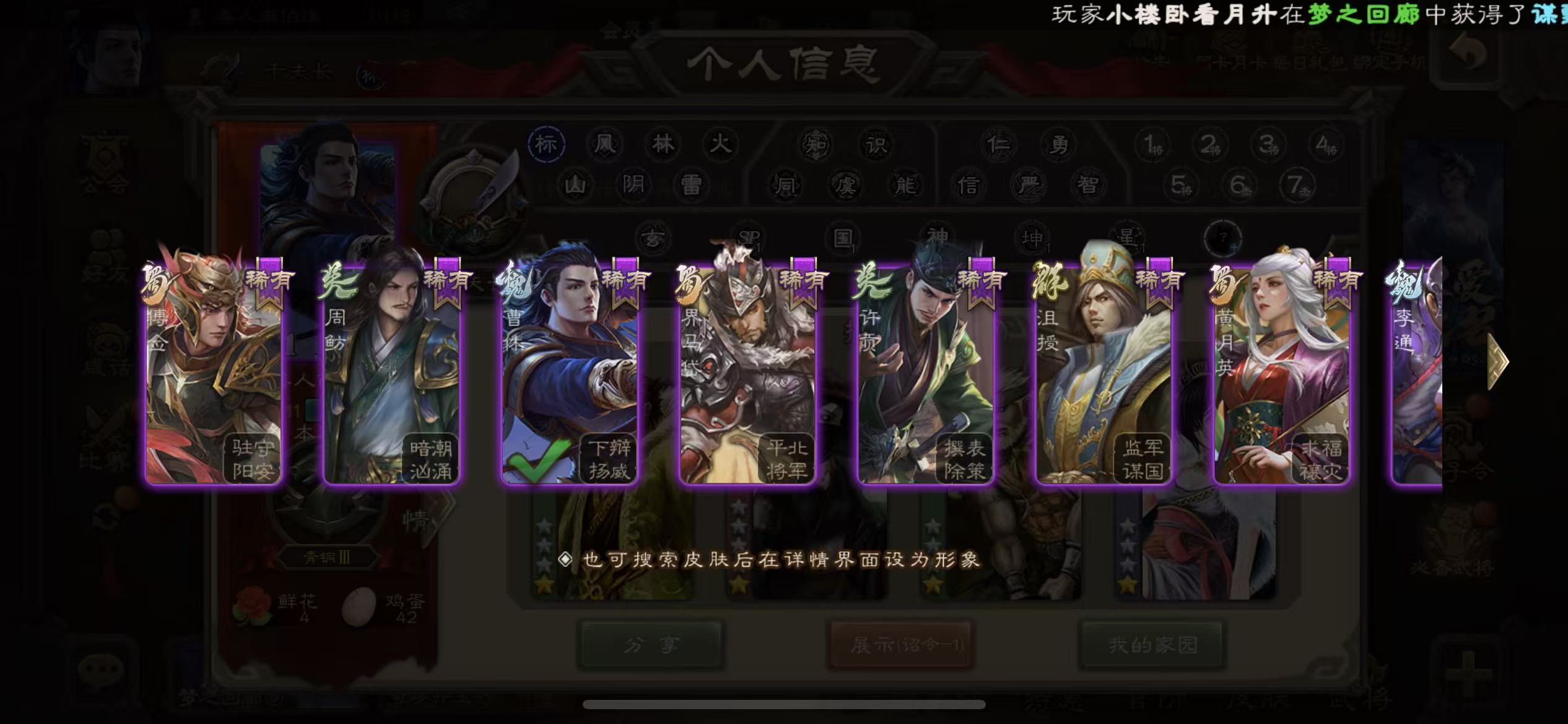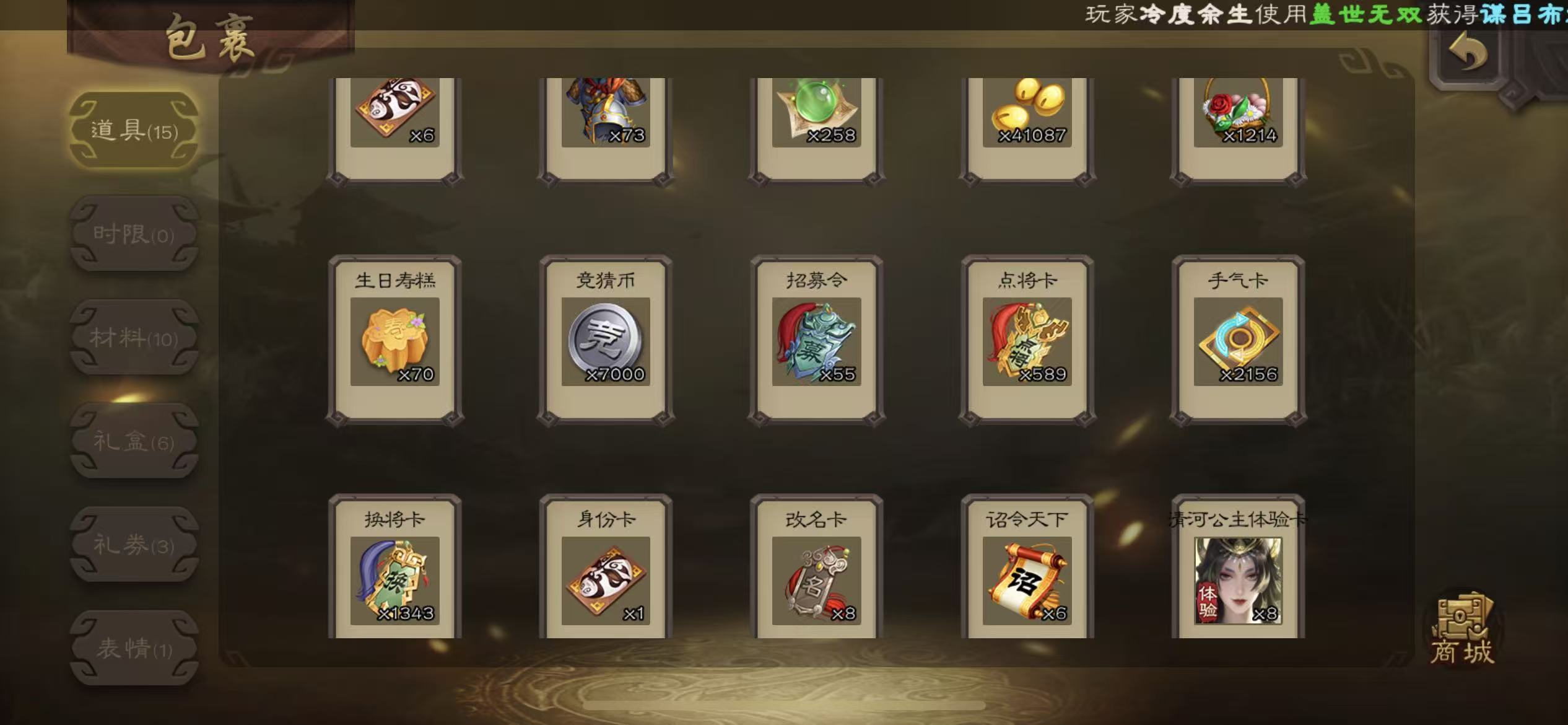 动态大宝神刘备谯周三卡6000将魂4.4万羽毛