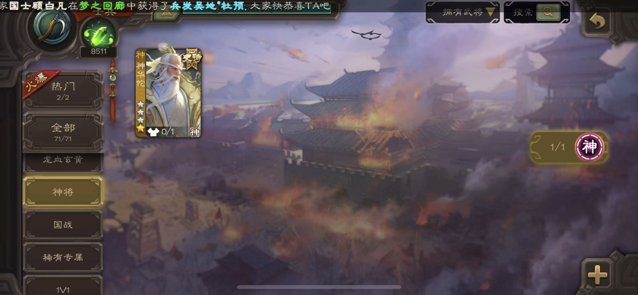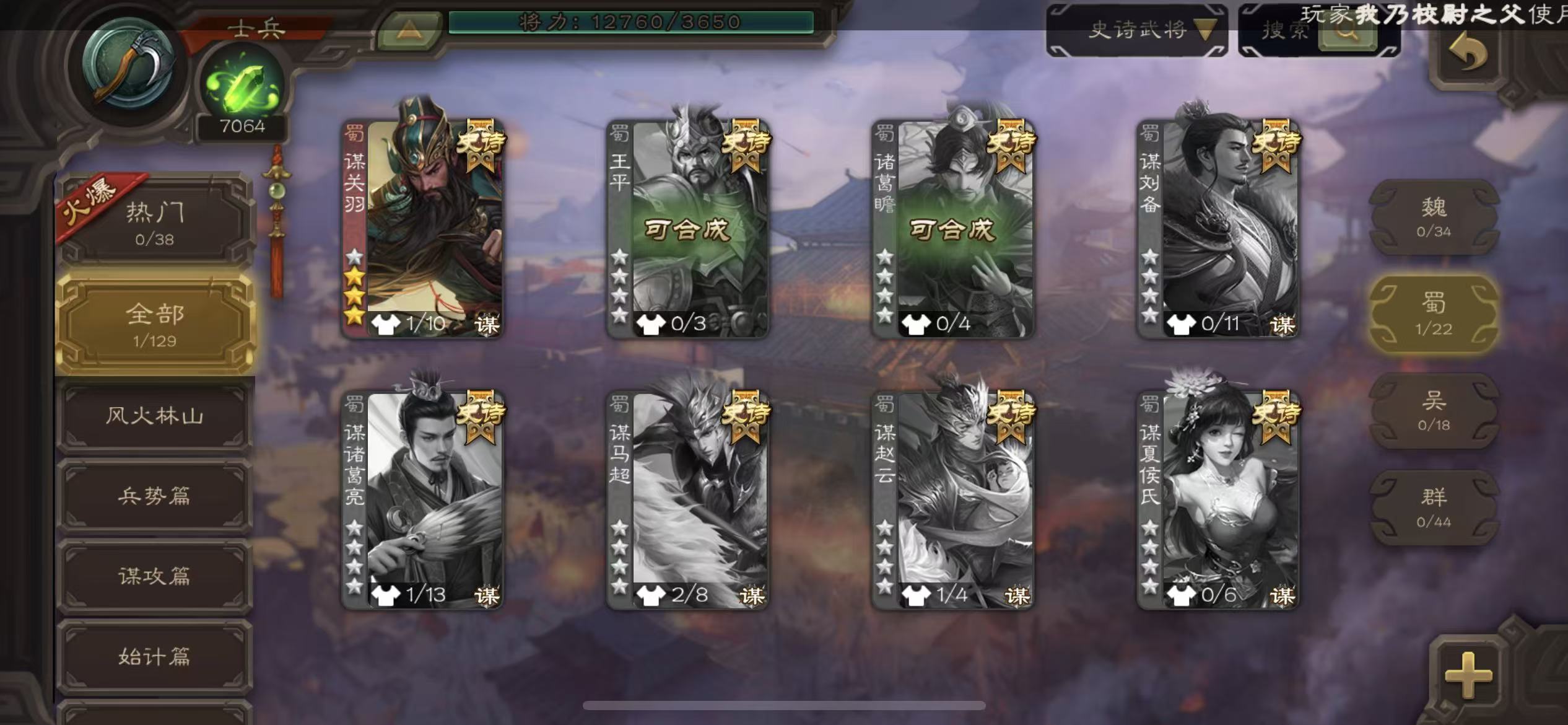 士兵神华佗谯周8500将魂8.9万羽毛三卡