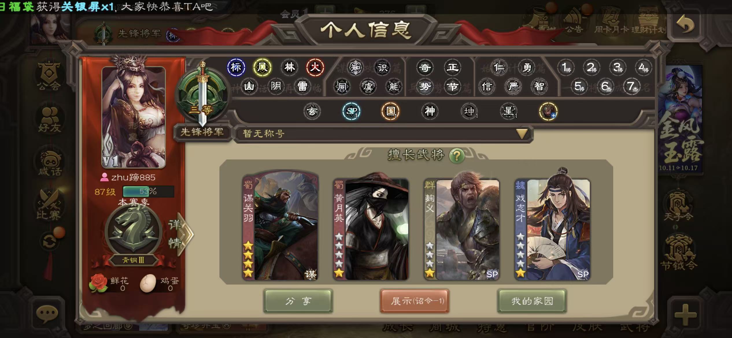 千夫长动态戏子谋诸葛亮神太史慈花花三卡三国杀 - 三国杀移动版 - 默认区服