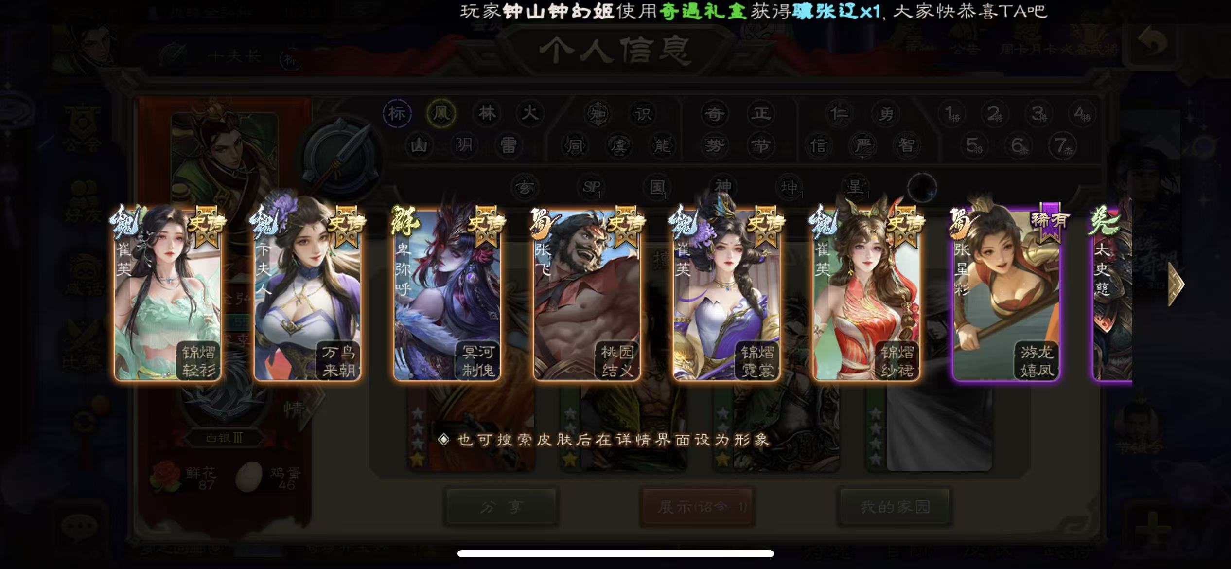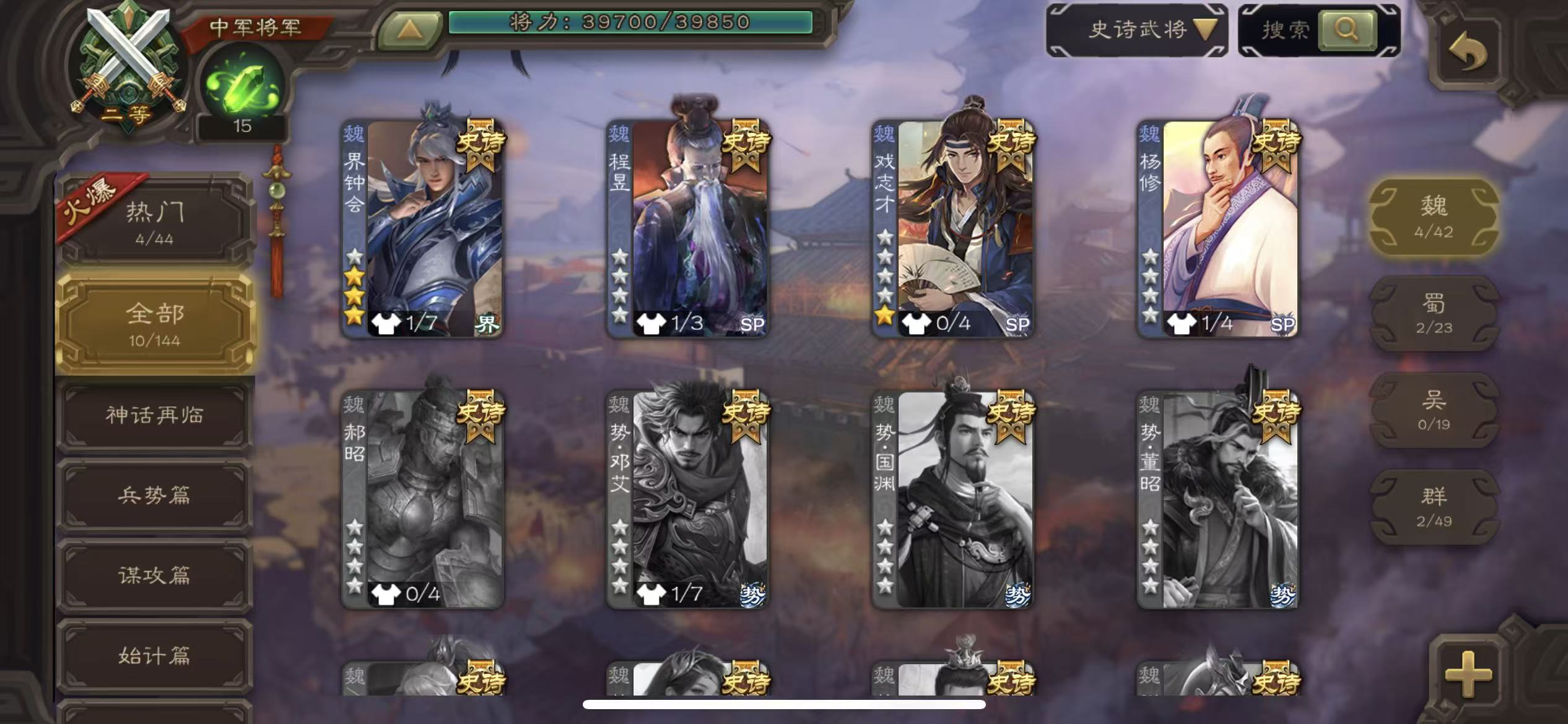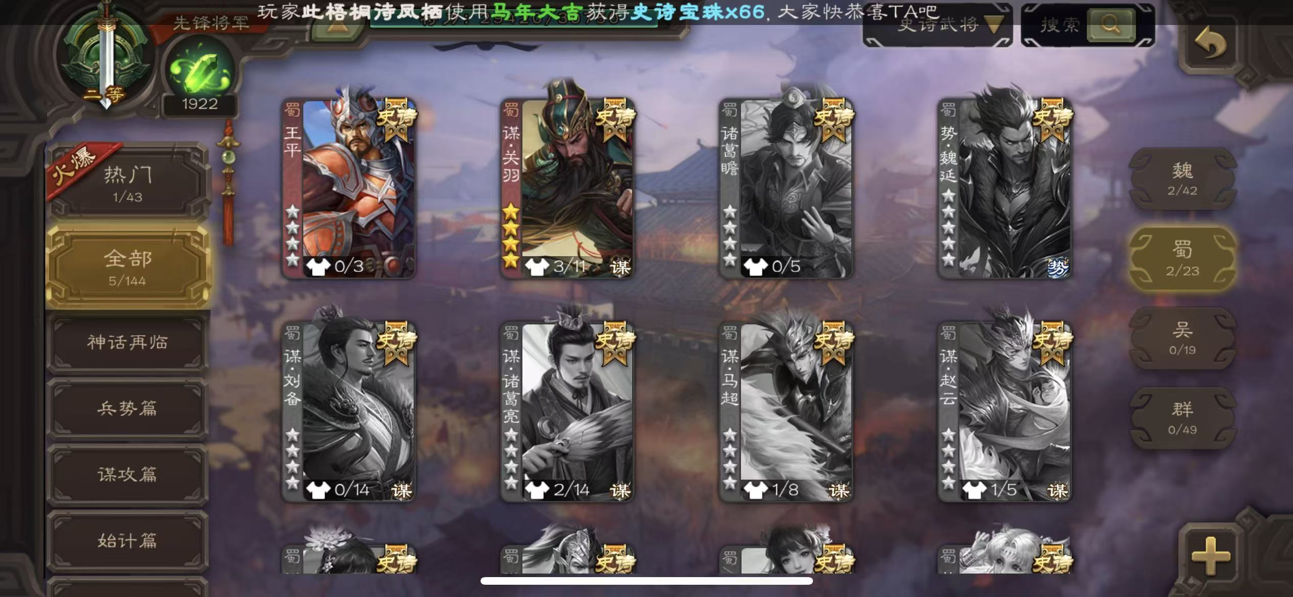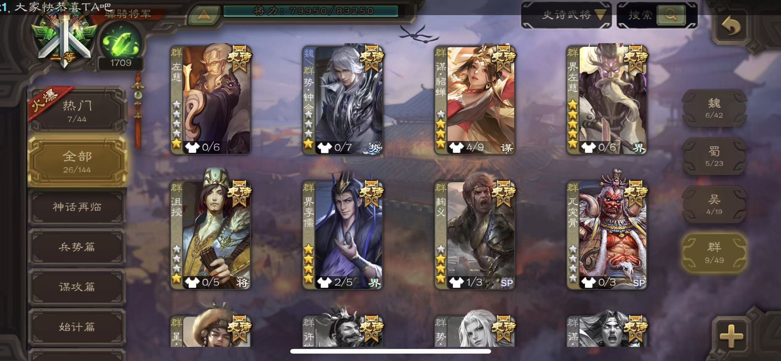 二等骠骑26史诗势钟会动态谋貂蝉动态势陆郁生谋诸葛亮动态界李儒动态白马界左慈三卡三国杀 - 三国杀移动版 - 默认区服
