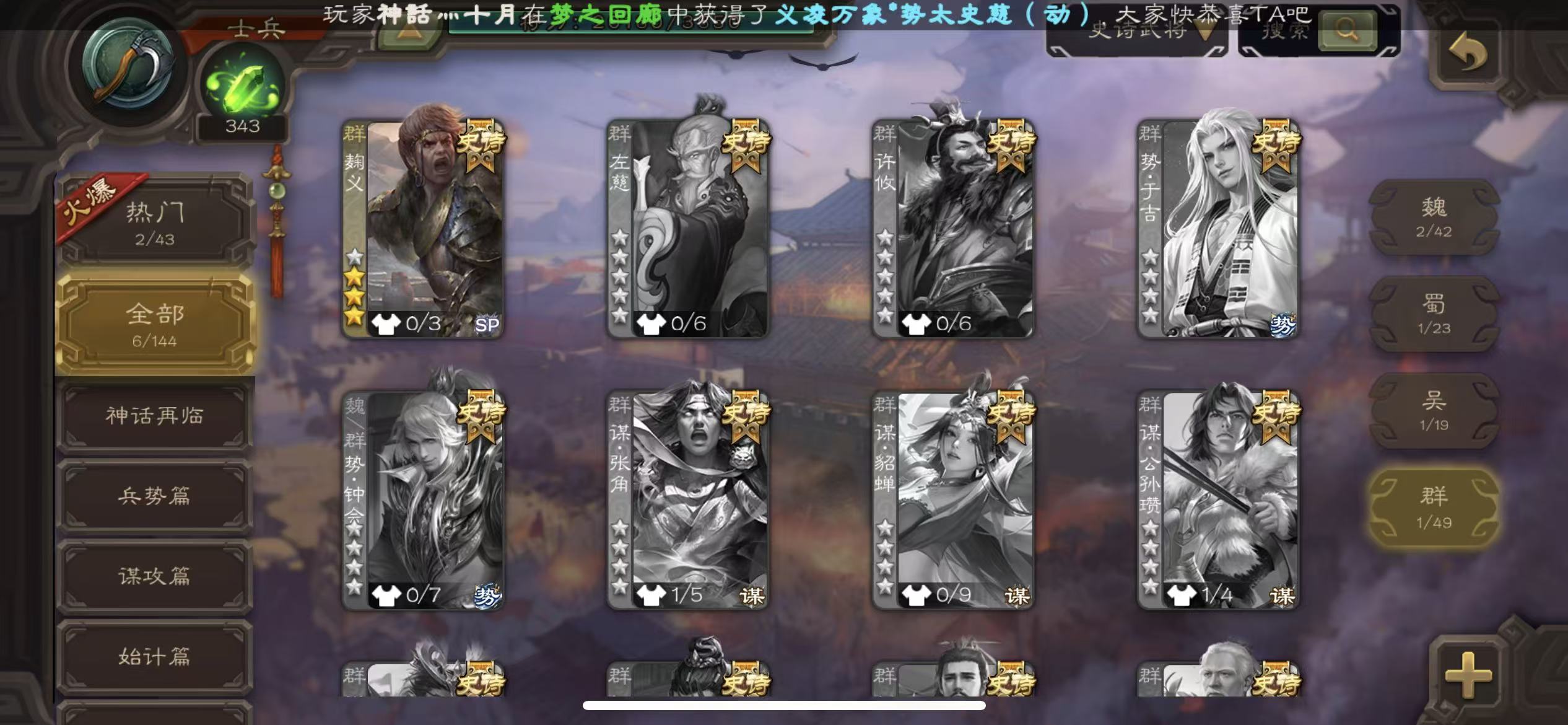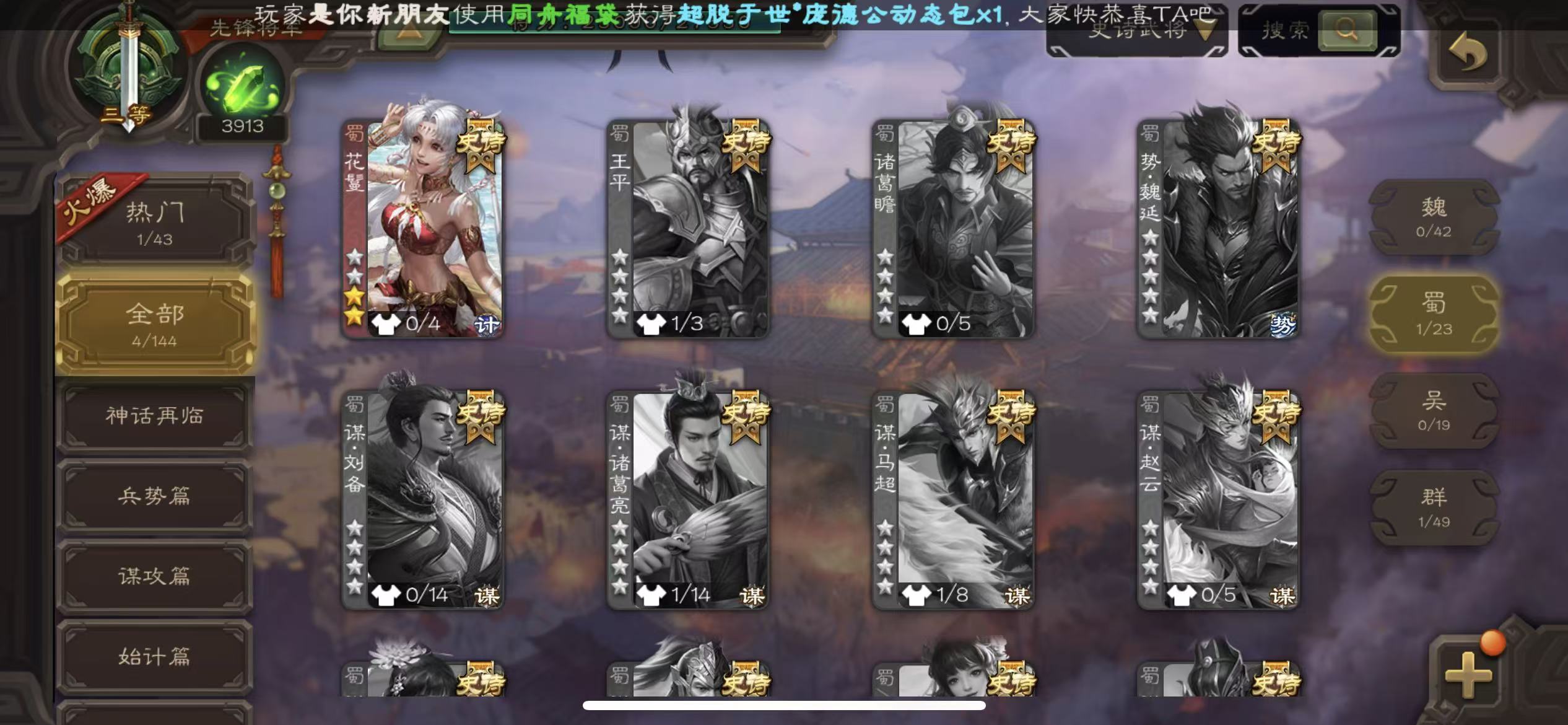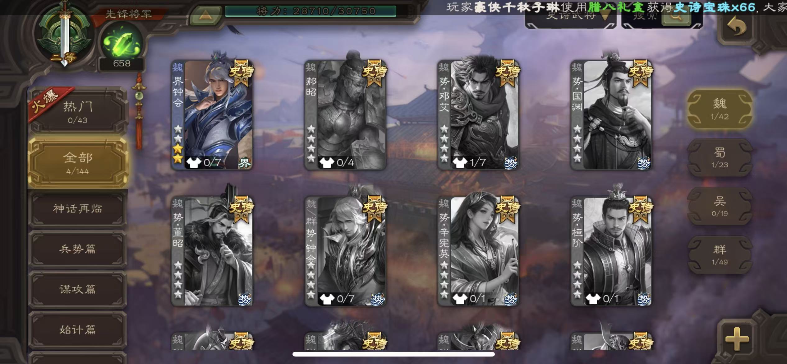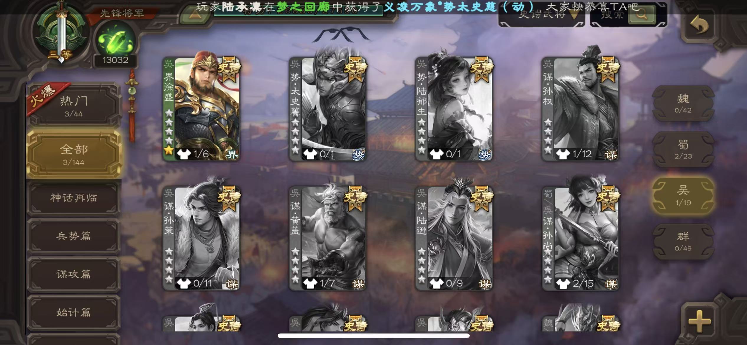 先锋动态大宝郑玄4史诗1.3万将魂三卡三国杀 - 三国杀移动版 - 默认区服