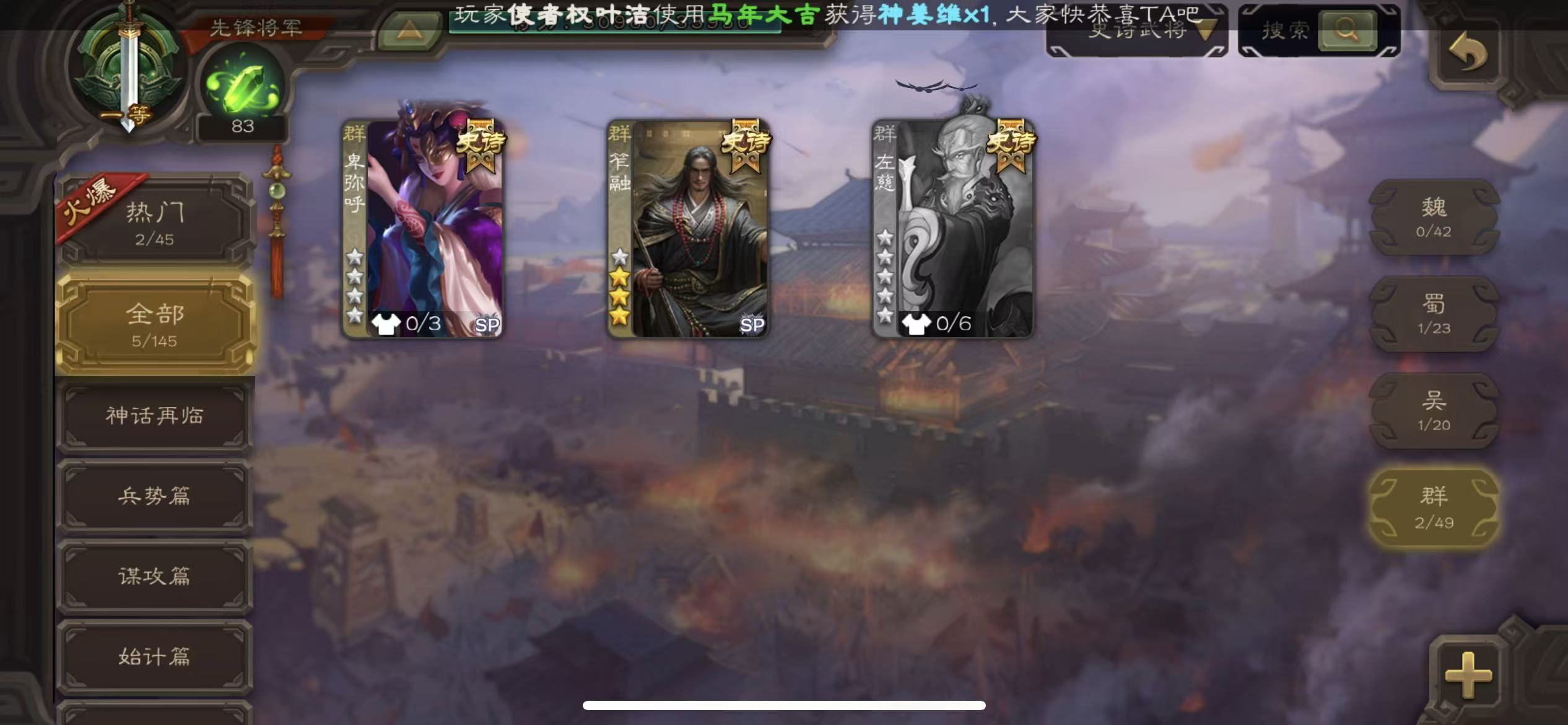 骠骑孙寒华威灵尽显界沮授乌鸦界钟会戏子司马师动态谋赵云动周处大宝星黄忠三国杀 - 三国杀移动版 - 默认区服