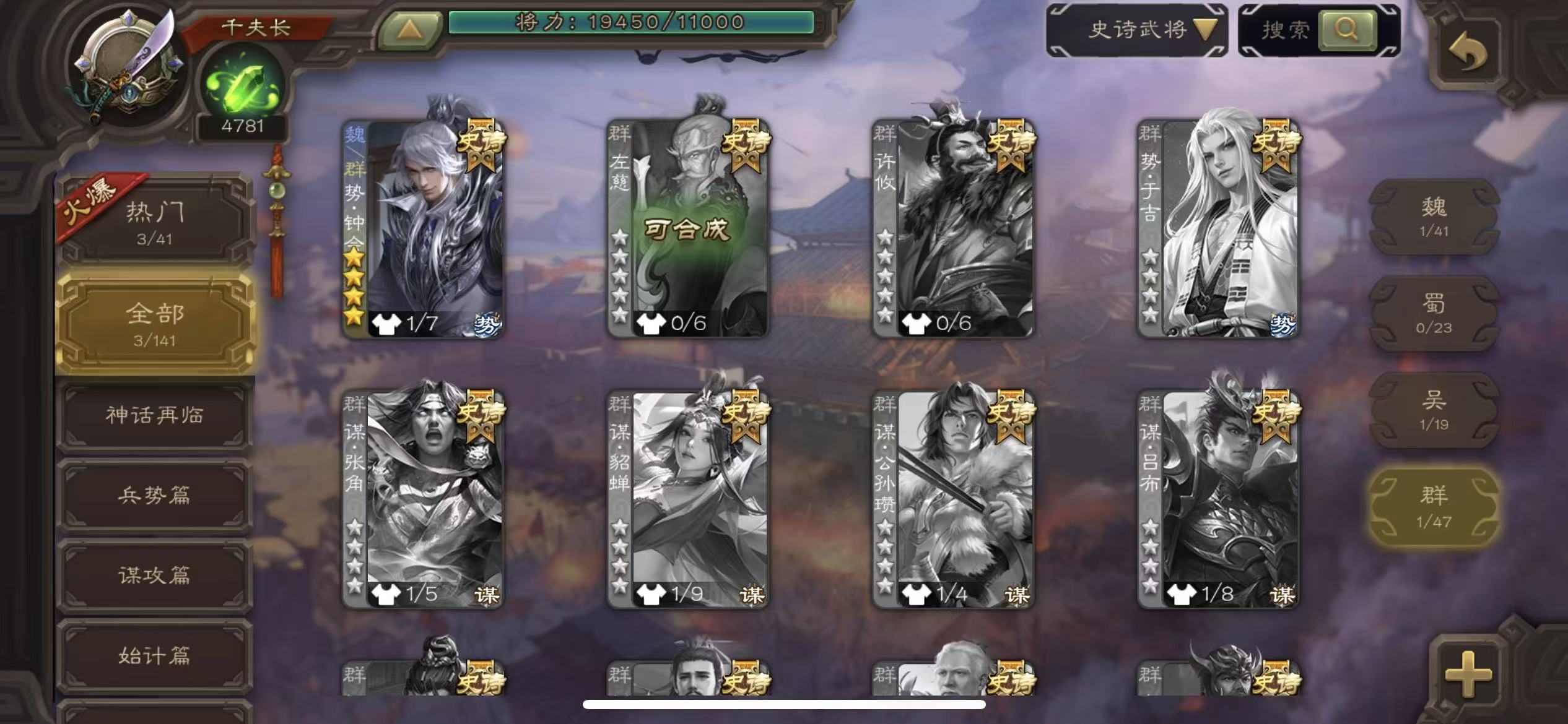 一等骠骑曹髦 天子令谋曹丕 双形态司马昭 动态清河公主 谋关羽 动态大宝 动态界李儒 动态白马 神赵云戏 子 许攸骆驼 星黄忠 张让 星董卓 司马孚 鲍信 谋诸葛谨 谋夏候渊 玄毋兵脸 势夏候尚 毛介 势陈到 谋小乔 谋韩当 杨弦 三卡充足三国杀 - 三国杀移动版 - 默认区服