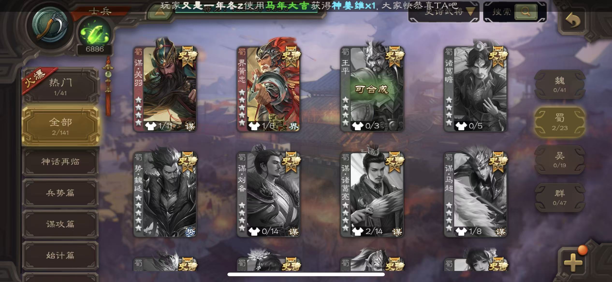 中军火龙果势魏延马云禄诸葛瞻花花张让7史诗三卡三国杀 - 三国杀移动版 - 默认区服